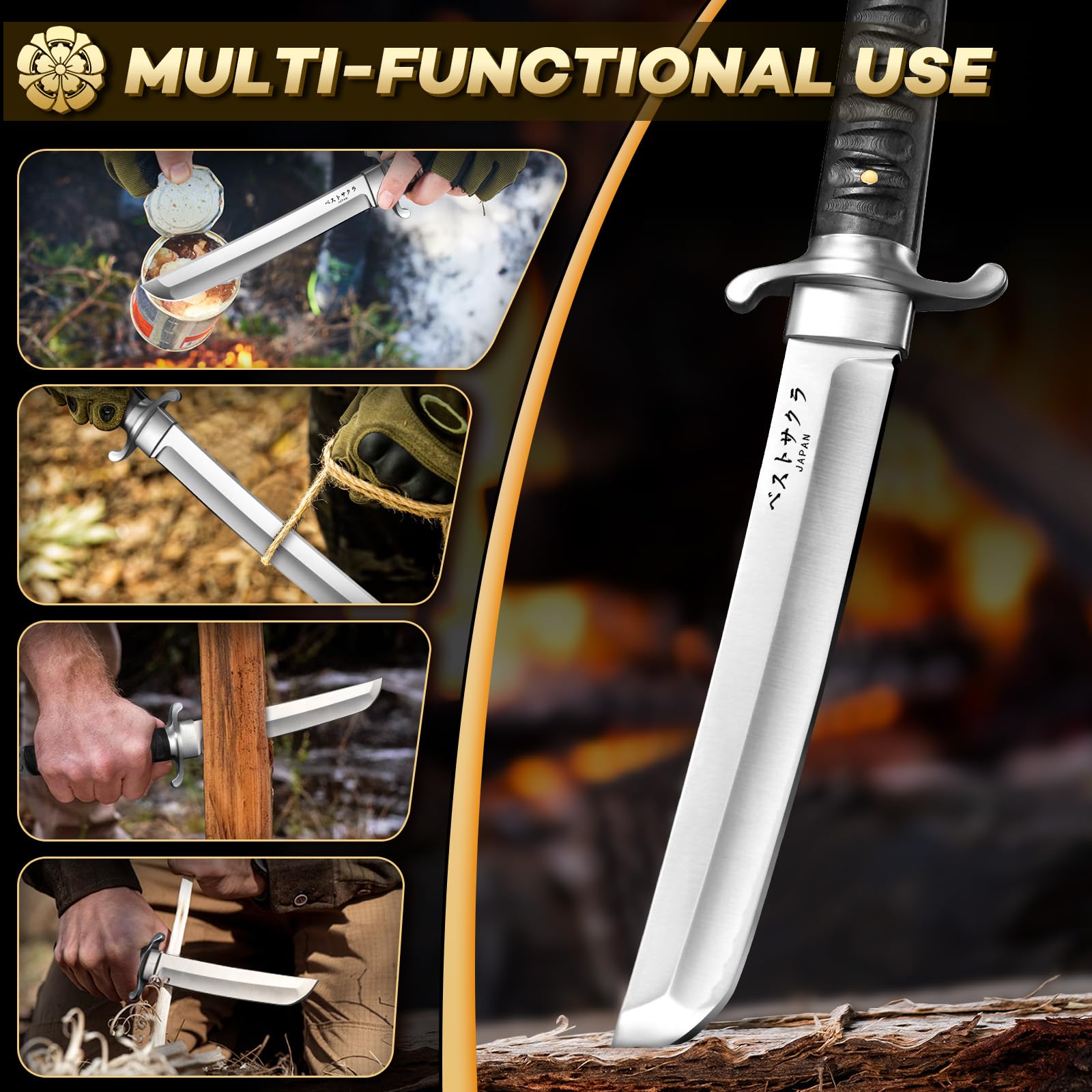 【A Meaningful Gift】 The streamlined guard and perfectly proportioned blade of this samurai knife embody both strength and elegance. From the minimalist curves to the intricately carved patterns, every detail is thoughtfully crafted. This tanto knife is more than just a tool—it’s a piece of art, making it an extraordinary gift for collectors, outdoor adventurers, or anyone who cherishes Japanese culture.