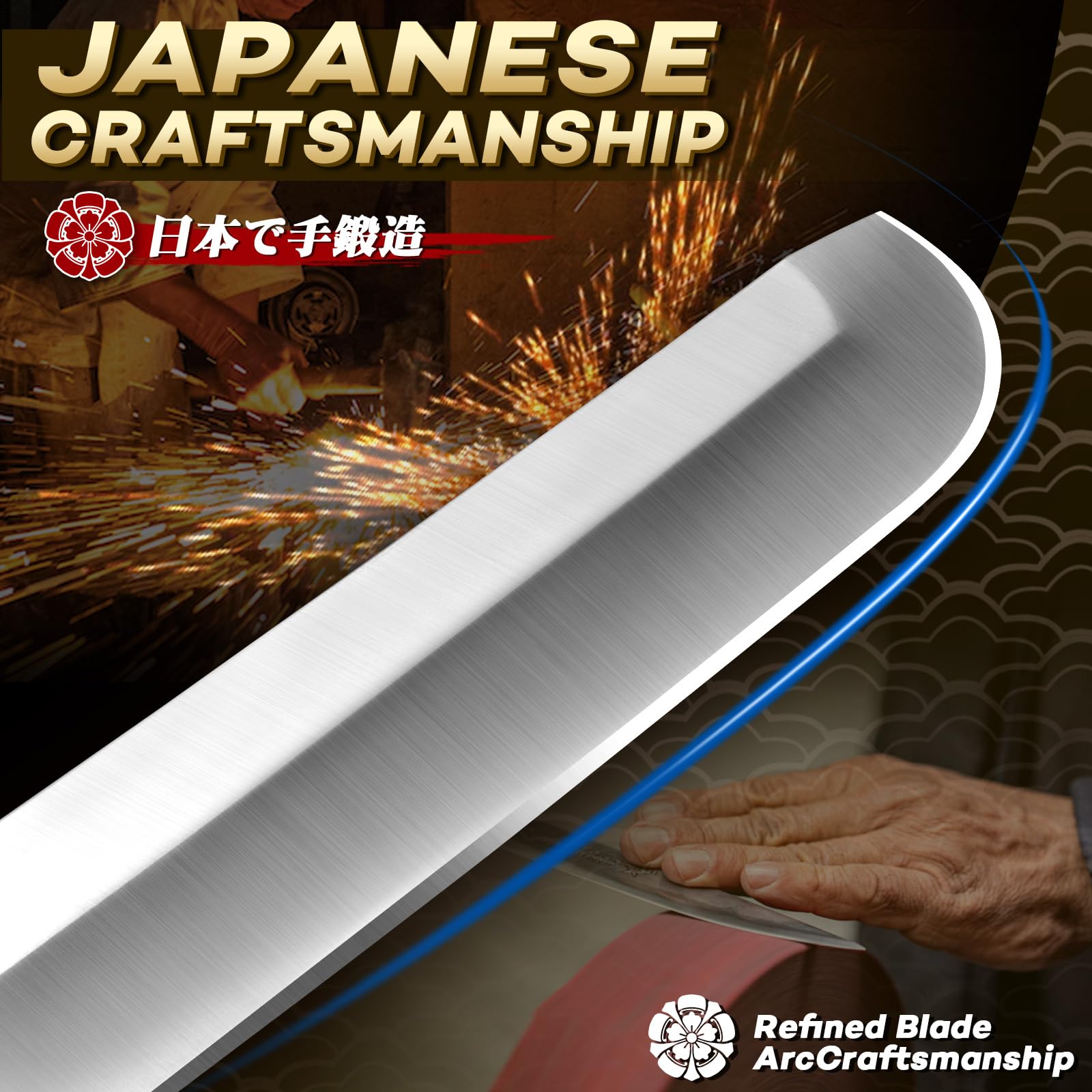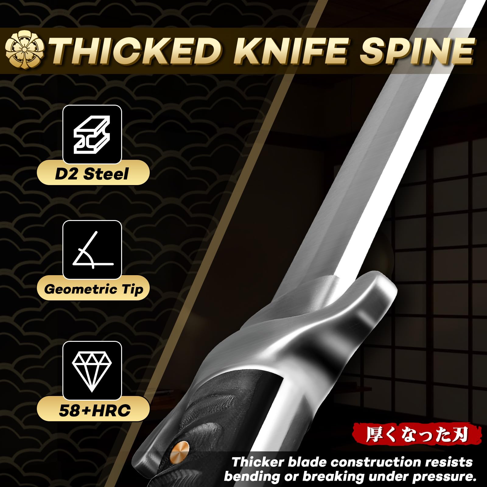 【Superior Craftsmanship】 Forged from premium D2 high-carbon steel with a triple water-cooled edge treatment, this tanto knife blade reaches an impressive hardness of 61+ HRC, delivering excellent edge retention, corrosion resistance, and cutting performance. The curved edge near the tip is carefully hand-ground, embodying the essence of traditional Japanese forging—combining sharpness with elegance.