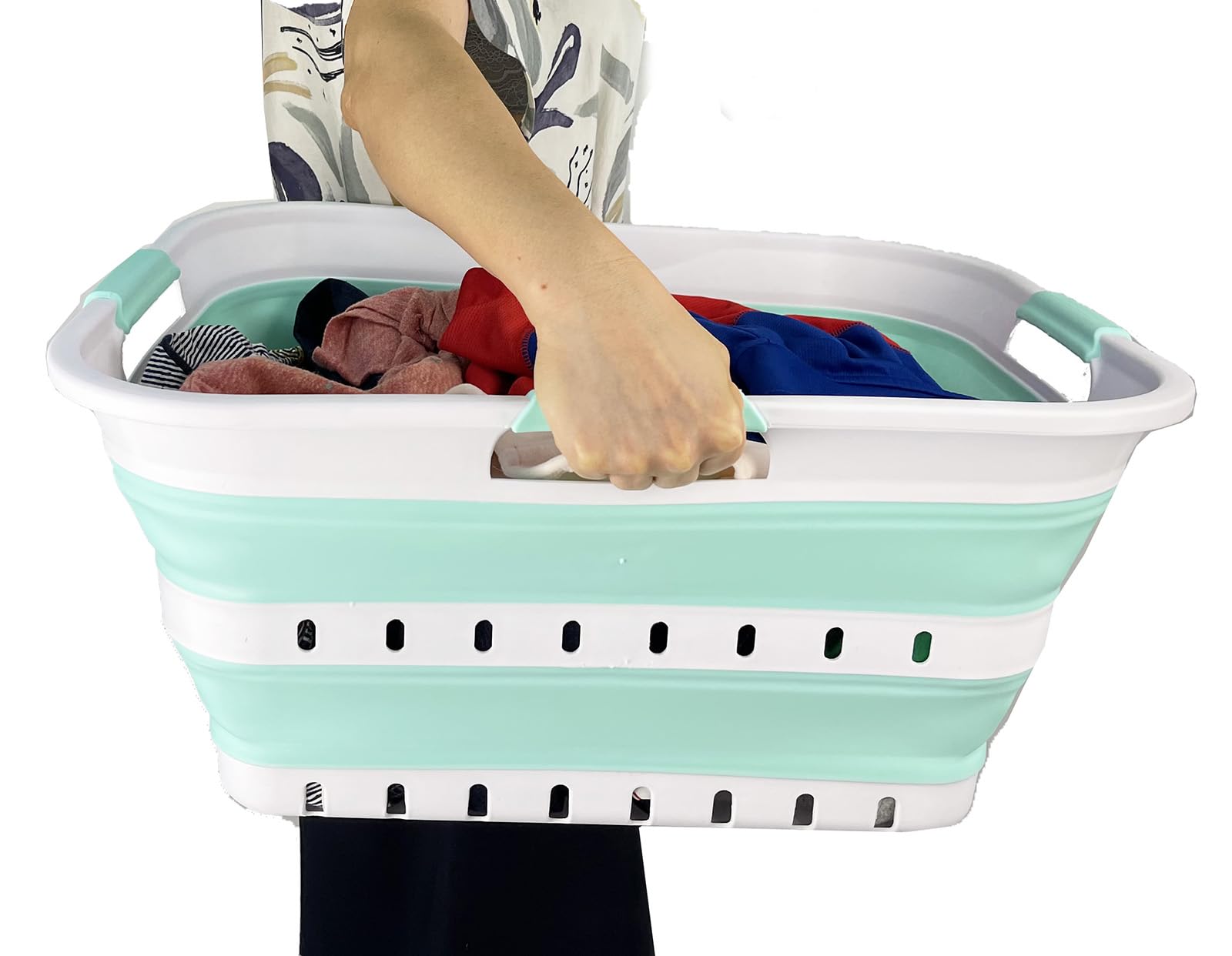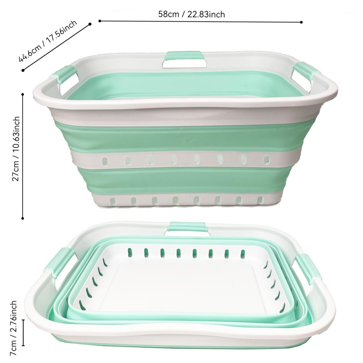 **Collapsible TPE/PP Laundry Basket **Brand: SAMMART **Material: TPE & PP **Expanded size: 22.8 x 17.5 x 10.6 inches **Collapsed size: 22.8 x 17.5 x 2.7 inches