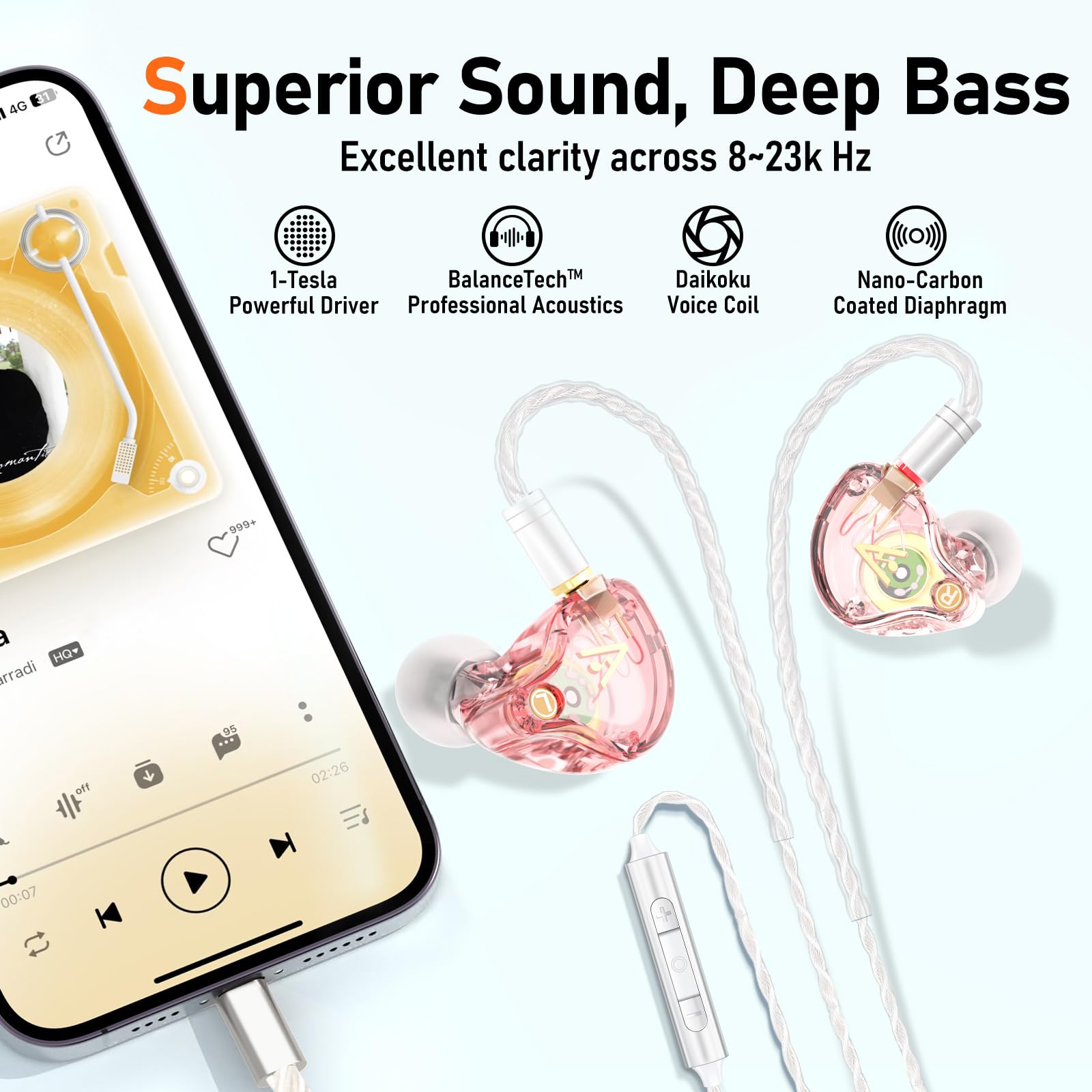 EXCEPTIONAL HIFI SOUND - Equipped with a 1-Tesla powerful driver and master-tuned professional acoustic chambers, the Vibes 202ML HiFi in-ear monitor earphones deliver precise and detailed sound across a full frequency range from 8 to 23k Hz. The high-purity, silver-plated, Litz-braided audio cable ensures stable and lossless sound transmission for pure, unaltered audio.