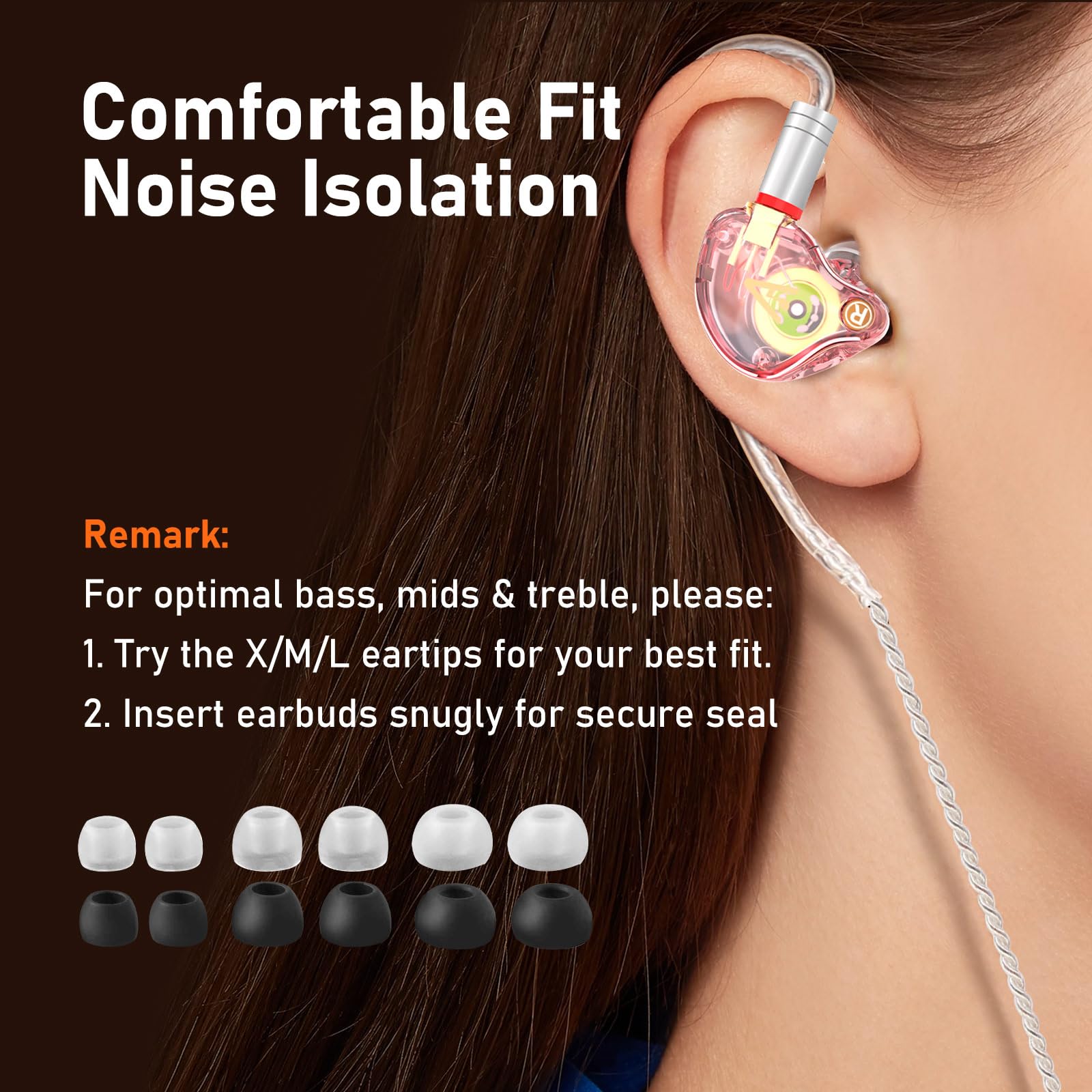 COMFORTABLE FIT & NOISE ISOLATION - Ergonomically designed to fit the ear canal, Vibes 202ML IEM headphones feature preformed over-ear earhooks for a secure fit and keep cables out of the way. With 6 pairs of soft, breathable eartips (in 2 colors and 3 sizes), they ensure optimal comfort and stability while effectively blocking ambient noise for immersive listening.