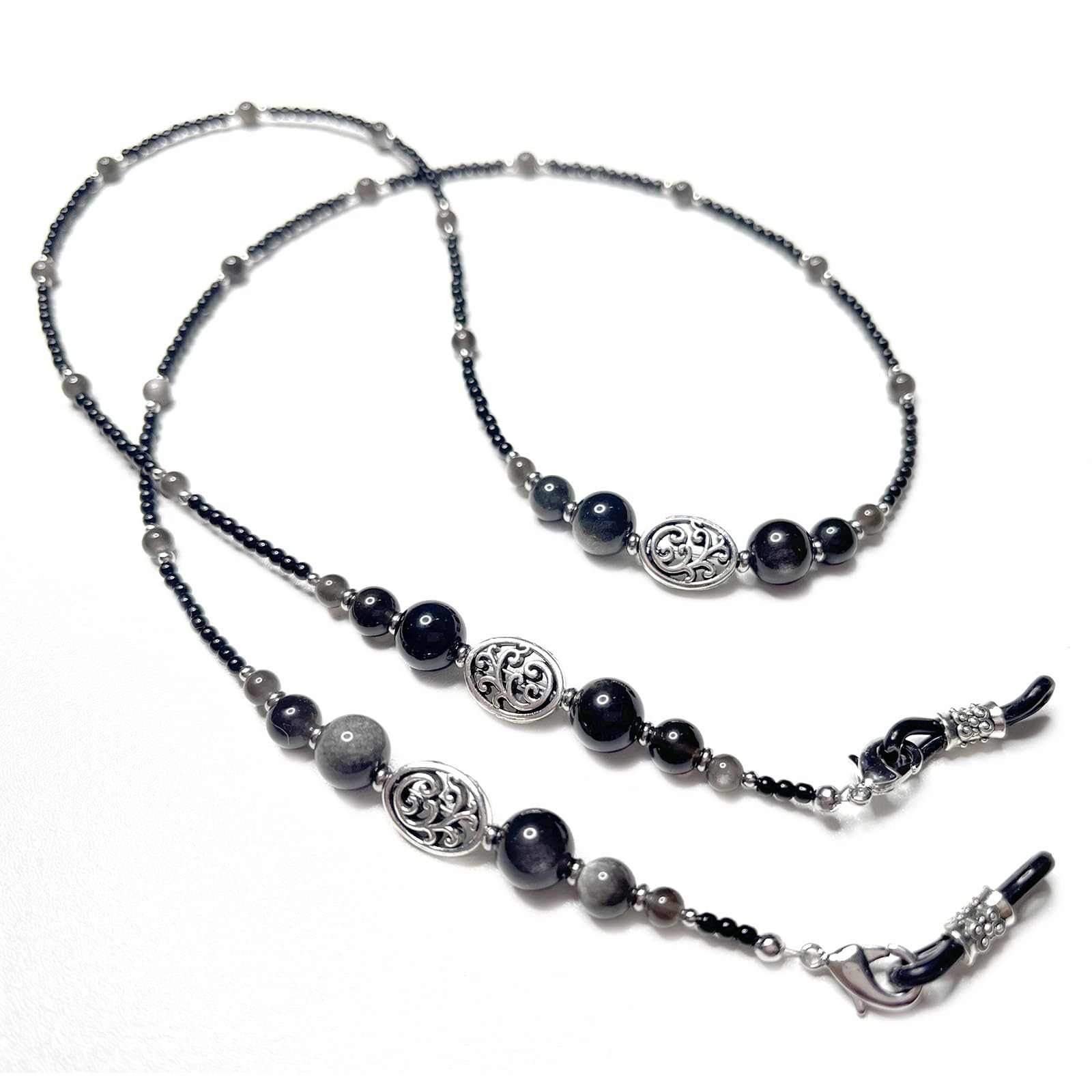 Adjustable Loop- Eyeglass chain owns adjustable loop that fit most glasses frames & arms. From narrow to wide, the Anti-Slip silicone loops will securely hold on to your glasses.