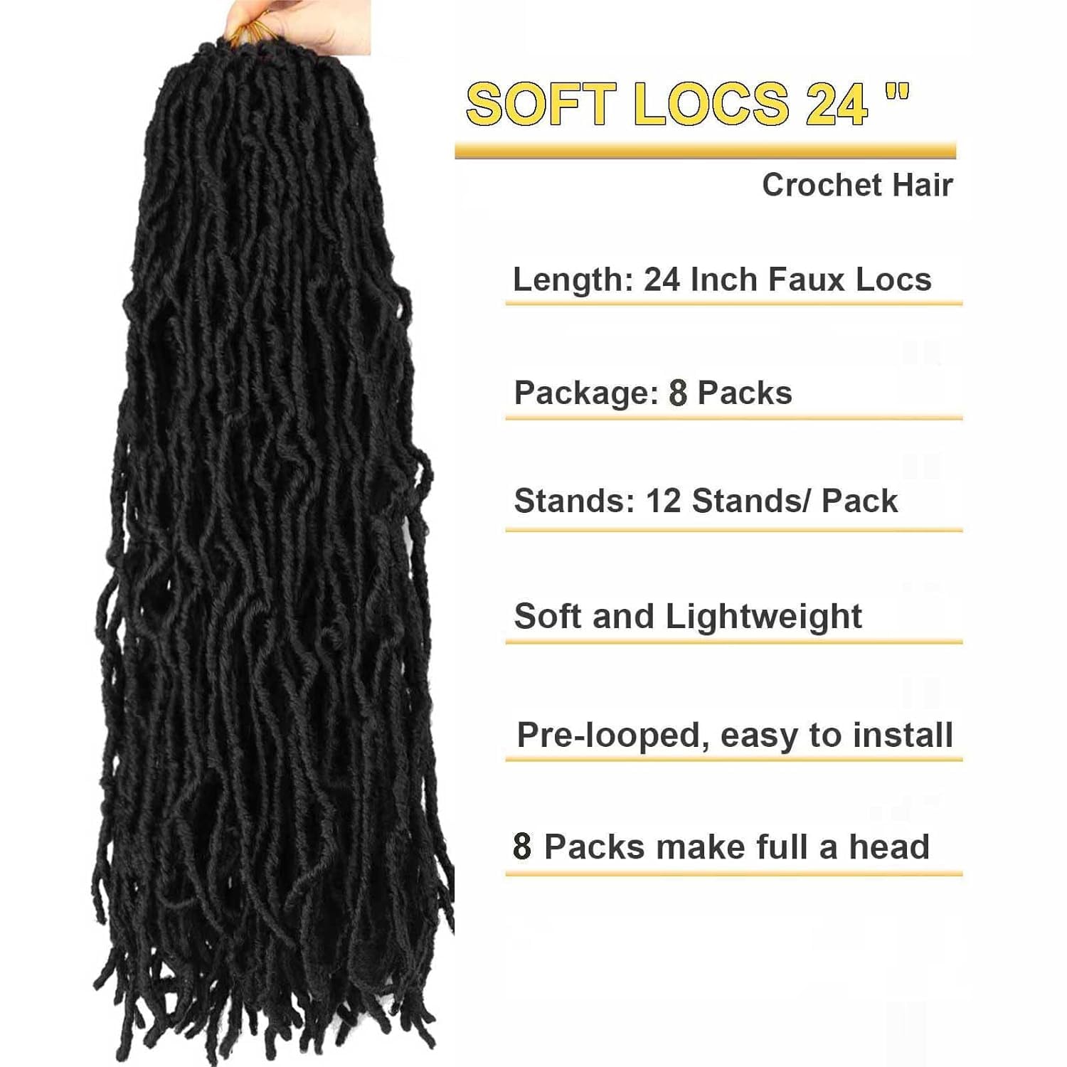 1. Soft Locs Crochet Hair Material: 100% High Quality Low Temperature Synthetic Fiber Synthetic Hair. Pre Looped and Pre Twisted Faux loc hair. Individually Pre-looped, Easy To Install, Beginner Friendly. Save Time And Money.