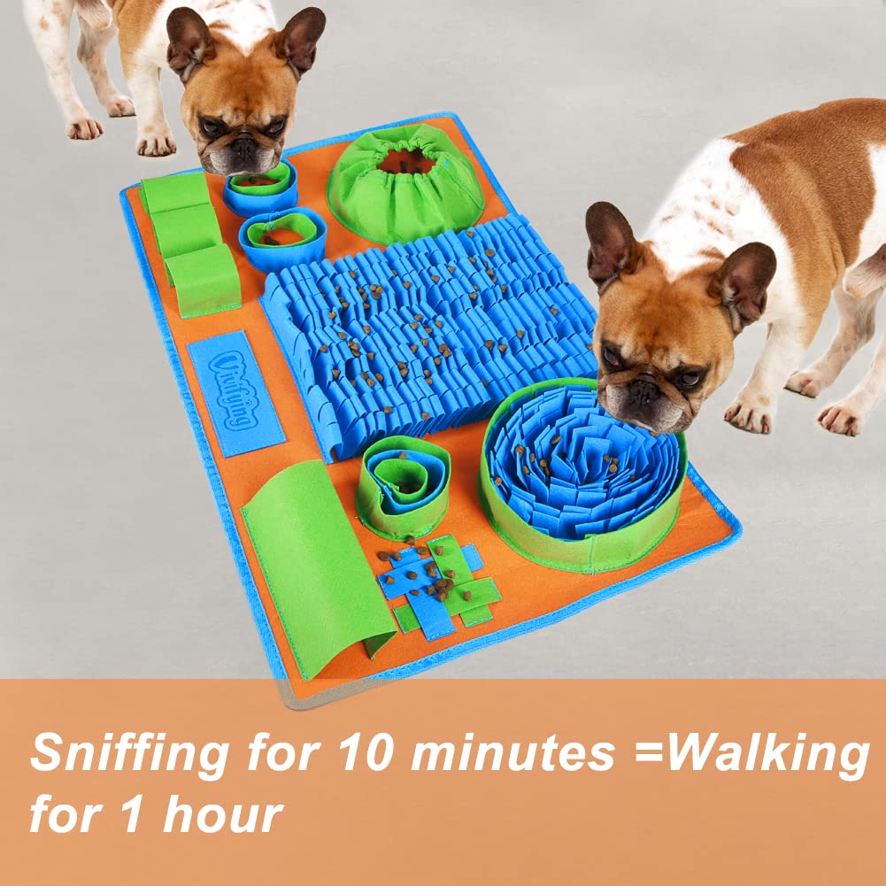 8 DIFFERENT PLACES TO HIDE TREATS - This sniff mat for dogs contains 8 different places to hide food or treats, increase the fun, challenge and training intensity of foraging. It allows you to enjoy the happy time of interacting with your dogs and avoid your dog destroys the furniture due to boredom