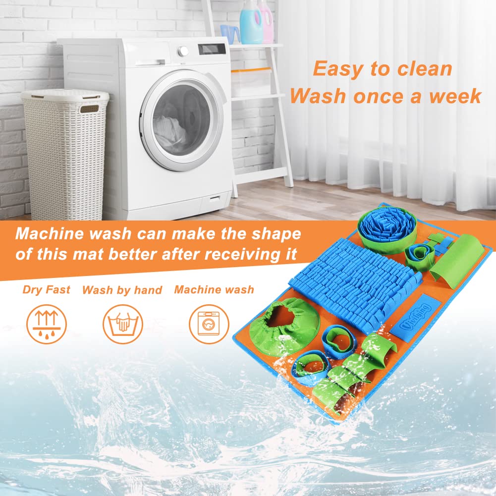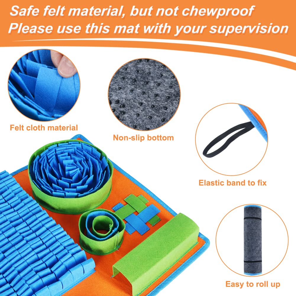 SAFETY MATERIALS - The main material of the foraging mat is felt cloth, which is safety but not chewproof. When you receive this felt snuffle mat, machine wash it once to make the shape as good as the picture
