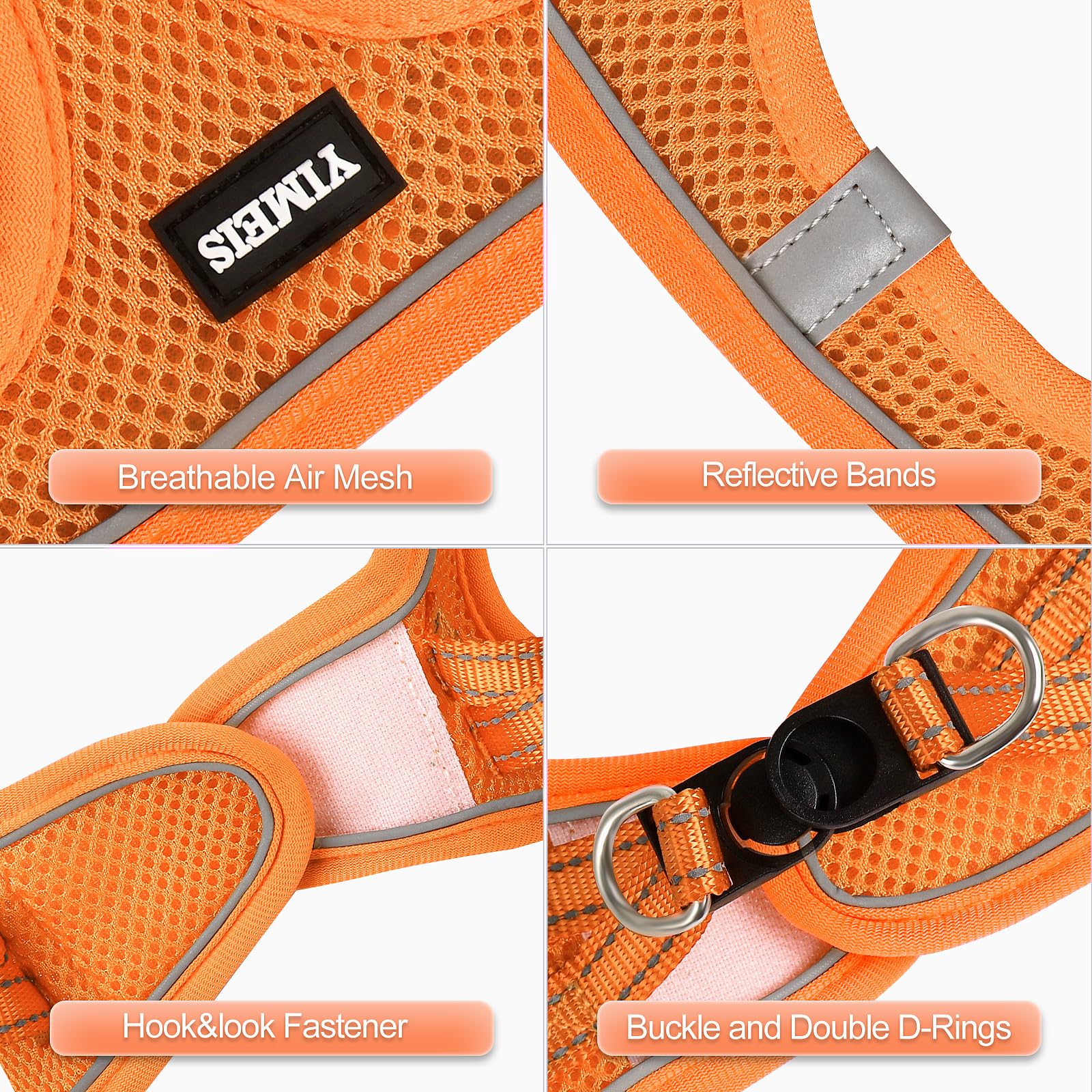【Step-In Design, Simple】Effortlessly slip this harness on or off your pup in seconds, Step in, Clip&Go, so easy; Triple security features of strong closure, Double D-ring&Buckle ensures no accidental detachment