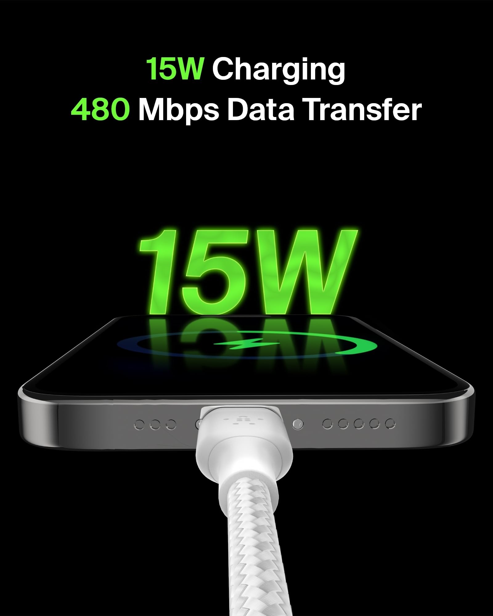Unlock the power of quality charging with our BoostCharge Braided USB-C to USB-A Cables. Designed with a double-braided exterior, these silicone charging cables are up to 10X more durable than ordinary cables,* giving you a long-lasting and flexible charging solution that won’t get tangled or frayed. These cables have undergone rigorous testing to withstand over 10,000 bends, ensuring longevity and reliability for all your charging needs. Whether you're at home, in your car, or on the go, these versatile cables provide seamless syncing of music, photos, and data while keeping your devices powered up. Belkin is an established accessories market leader creating high-quality, innovative tech solutions for 40 years. *Withstands up to 10,000 bends based on internal laboratory test results, compared with 1,000 bends for an ordinary PVC cable. Specifications: Cable Length: 3.3ft / 1M USB-IF certified 15W 10,000+ bends Compatibility: Apple iPhone 17, iPhone Air, iPhone 17 Pro, iPhone 17 Pro Max, iPhone 16, iPhone 16 Plus, iPhone 16 Pro, iPhone 16 Pro Max, iPhone 16e, iPhone 15, iPhone 15 Plus, iPhone 15 Pro, iPhone 15 Pro Max, Google Pixel 10 Pro XL, Google Pixel 10 Pro Fold, Google Pixel 10 Pro, Google Pixel 10, Google Pixel 9, Note, Samsung Galaxy S25 Series, iPad Pro, USB-C tablets, Nintendo Switch 2, Earbuds, and much more 100% plastic-free packaging 2-year Coverage Package Includes: (2) 3.3ft BoostCharge Braided USB-C to USB-A cables