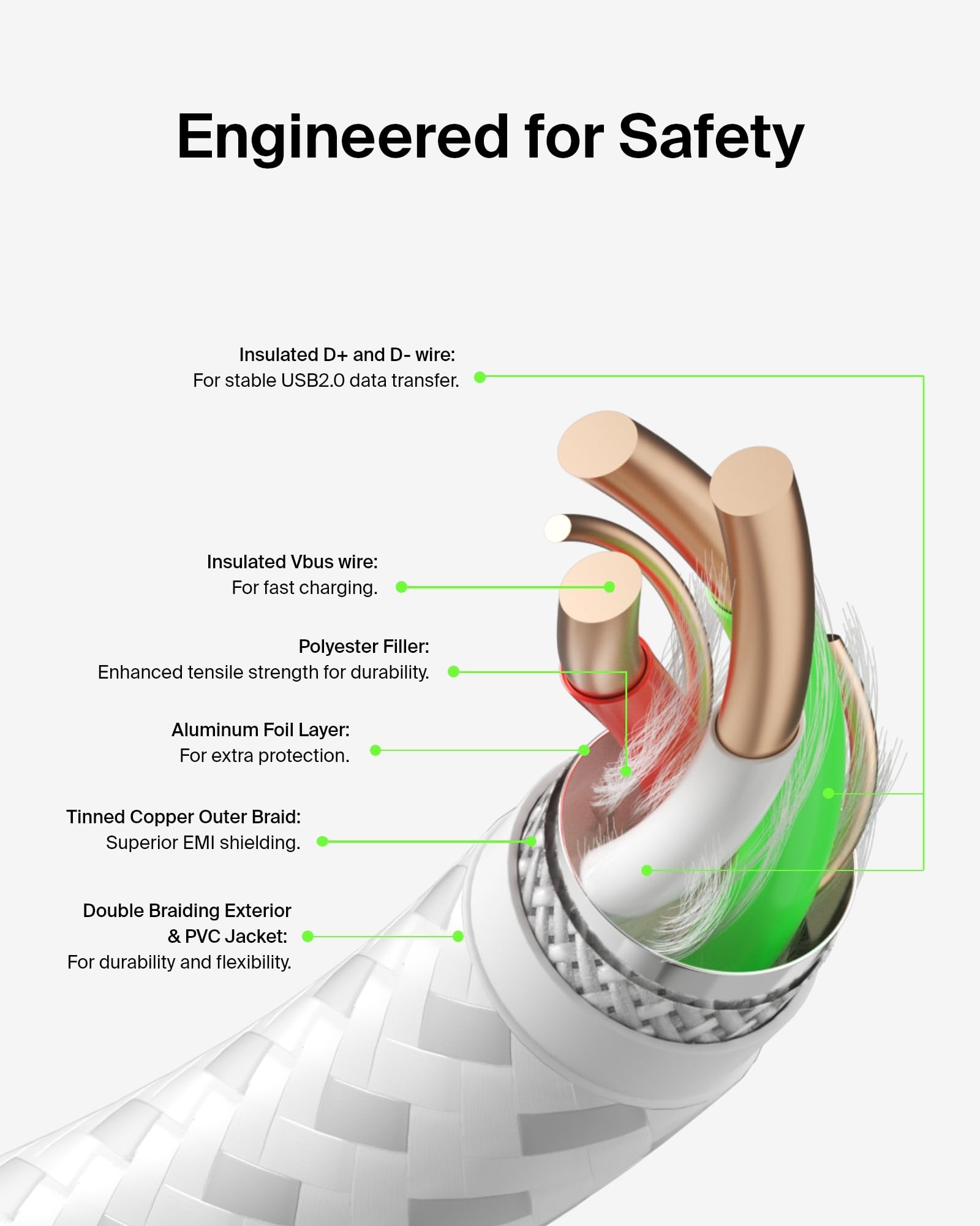 SAFE CHARGE + 2-YEAR COVERAGE: Designed with dual E-marker chips with OTP (Over-Temperature Protection) to ensure charging safety. And it comes with 2-year coverage, so you can rest assured that your charging cable and more are covered from damage.