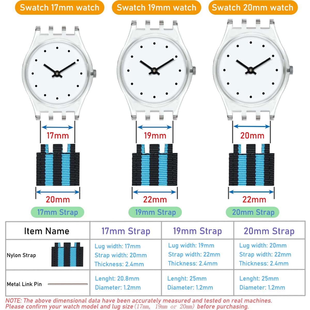 【Widely Compatibility】: Perfectly compatible with Swatch watches with 17mm lugs. Such as for Swatch G* series watch(GB274/GW164/GW169/GB294/GS149 etc).Please measure your Swatch before buying, if the lug is 17mm wide it will fit.