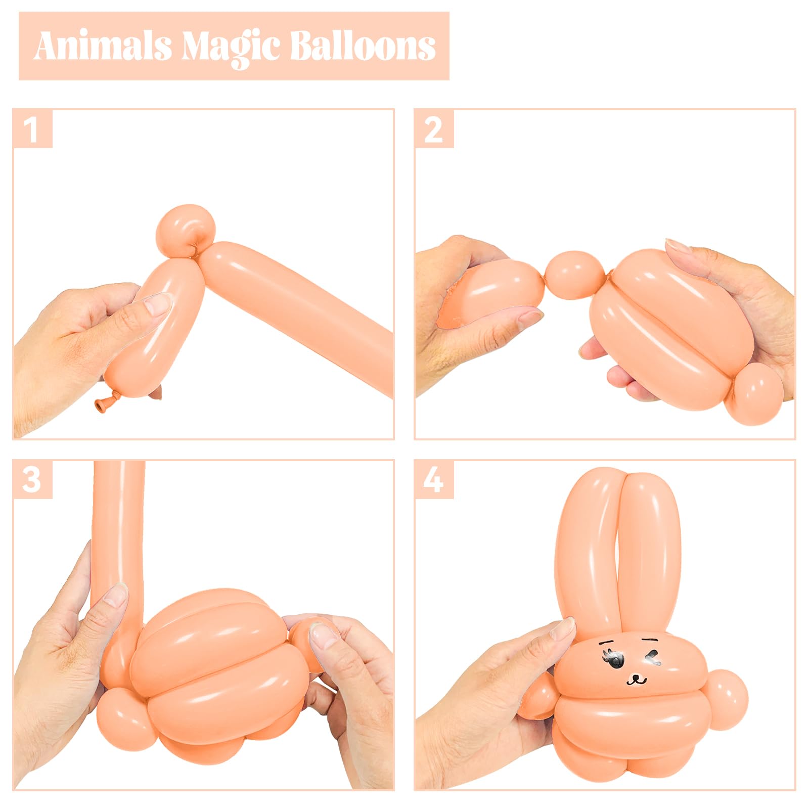 【DIY Magic Balloons】You will make any animals with the long modeling balloons,Very fun and interesting, Through makeing the peach long balloons into different shape(dog, Spider, bear, or any other things), It can greatly stimulate the creative thinking imagination of children.