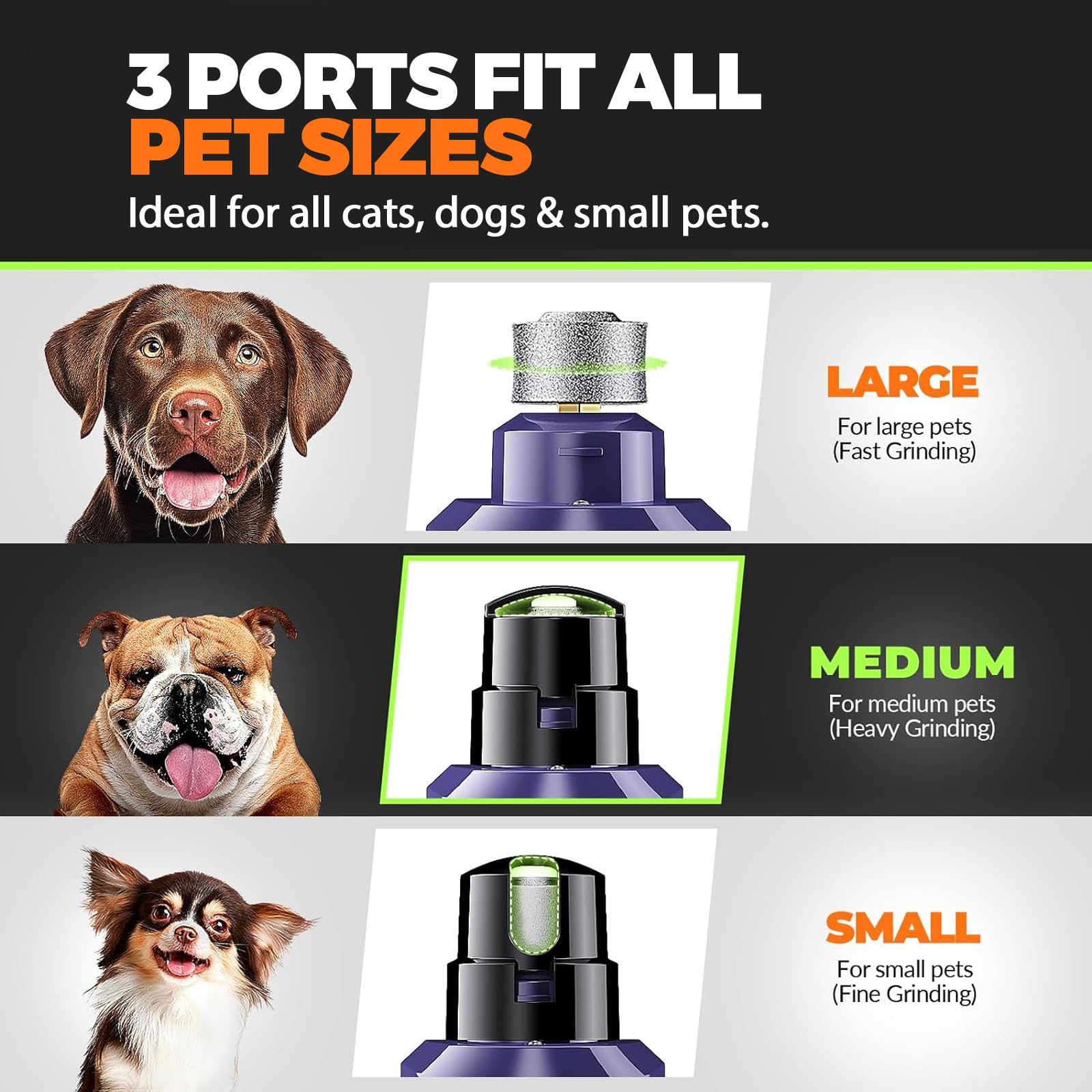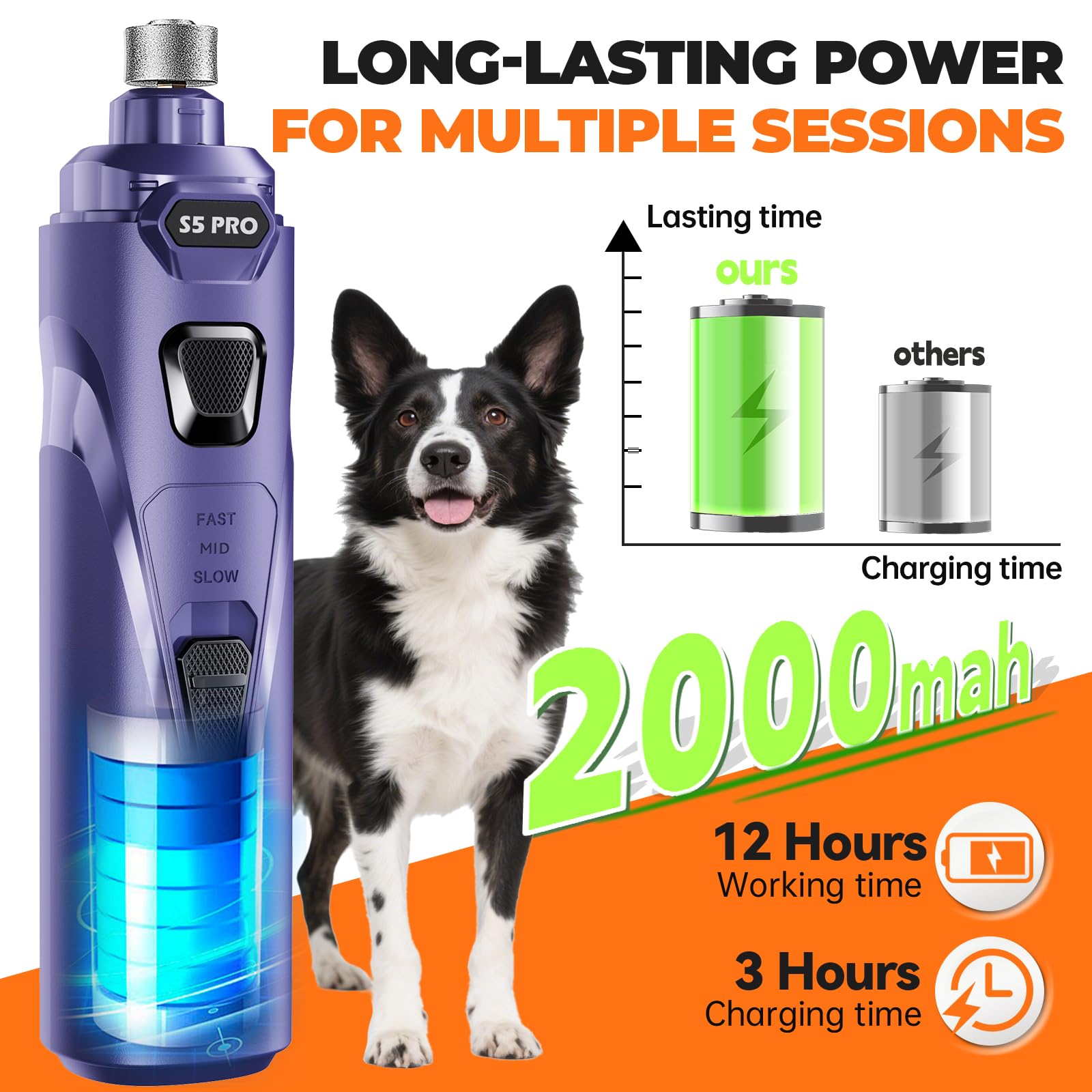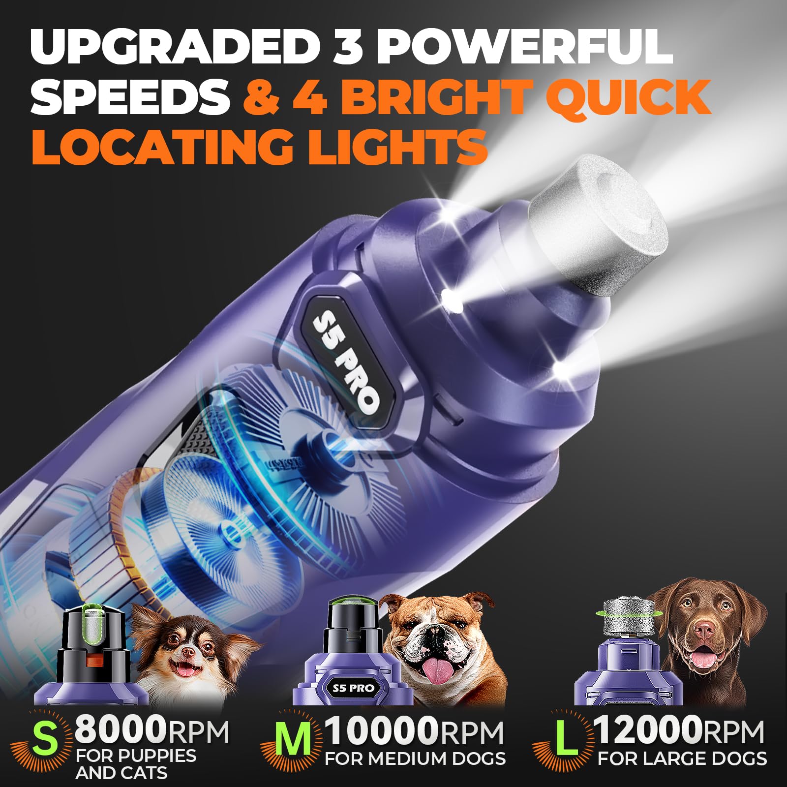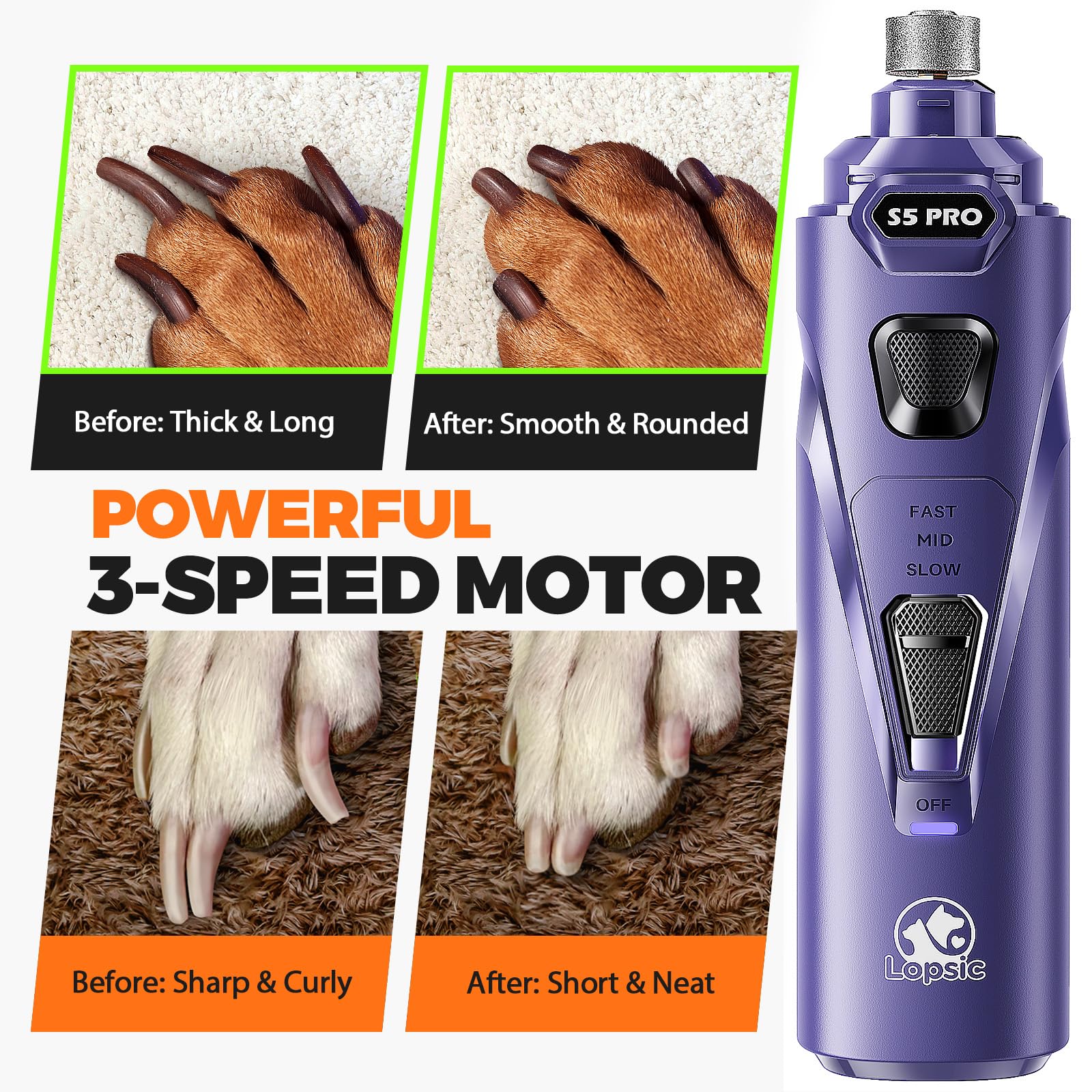 ๐-๐๐ฉ๐๐๐ & ๐๐,๐๐๐ ๐๐๐ ๐๐จ๐ฐ๐๐ซ๐๐ฎ๐ฅ ๐๐จ๐ญ๐จ๐ซ: Low speed for small dogs & puppies; medium & high speed for medium to large dogs with thick, tough nails. 12,000 RPM motor provides strong, efficient grinding power
