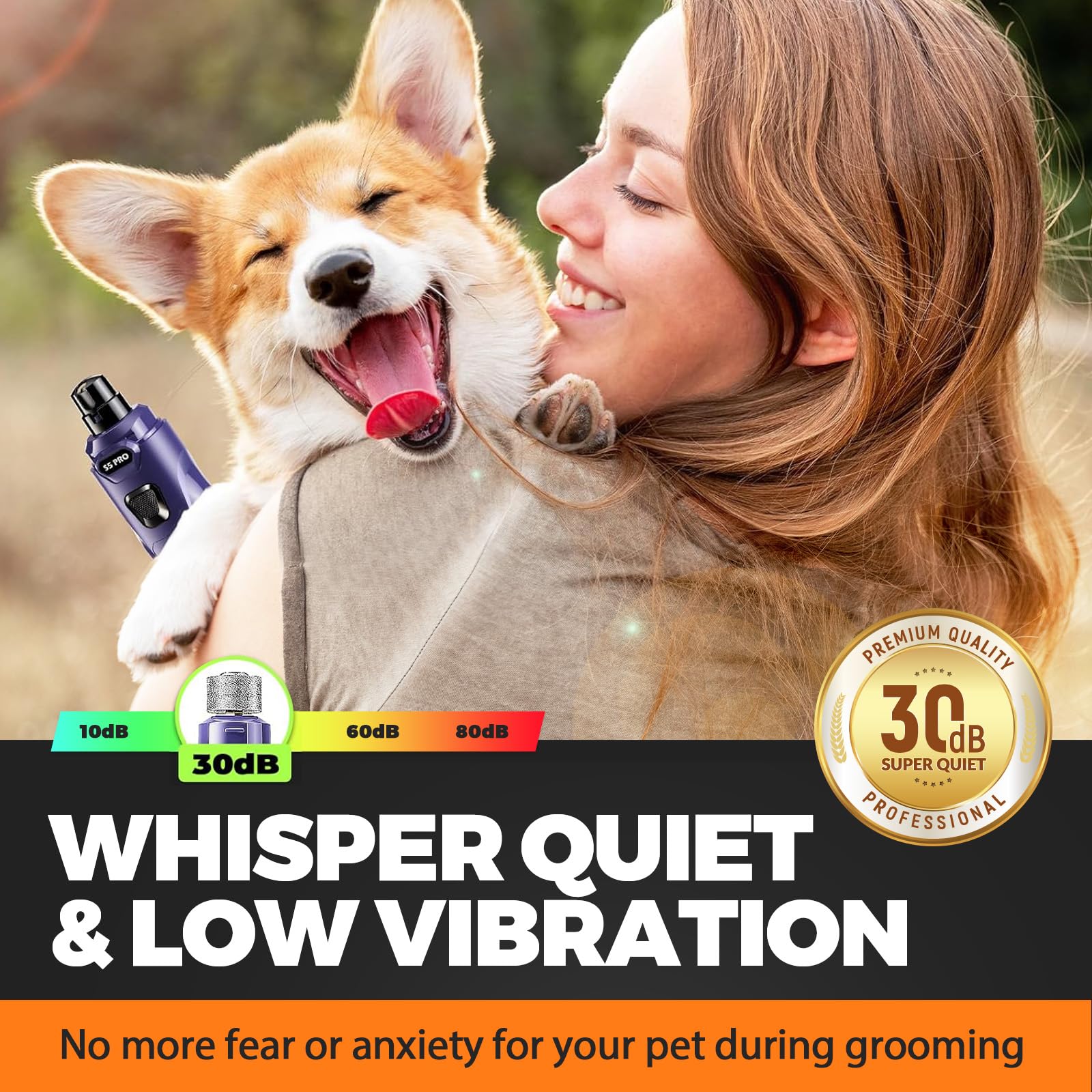 ๐๐ก๐ข๐ฌ๐ฉ๐๐ซ ๐๐ฎ๐ข๐๐ญ & ๐๐ญ๐ซ๐๐ฌ๐ฌ-๐ ๐ซ๐๐ ๐๐ซ๐จ๐จ๐ฆ๐ข๐ง๐ : Ultra-quiet and low-vibration design keeps sensitive dogs calm. No more fear, shaking, or struggling during nail care
