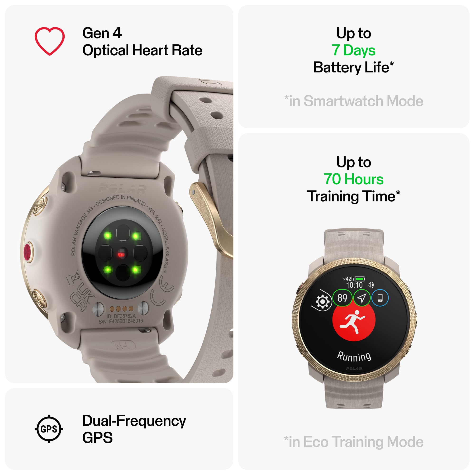 Extended Battery Life – With up to 30 hours in training mode and up to 7 days in smartwatch mode, Polar Vantage M3 keeps up with your active lifestyle, providing long-lasting power for multiple sports and training sessions.