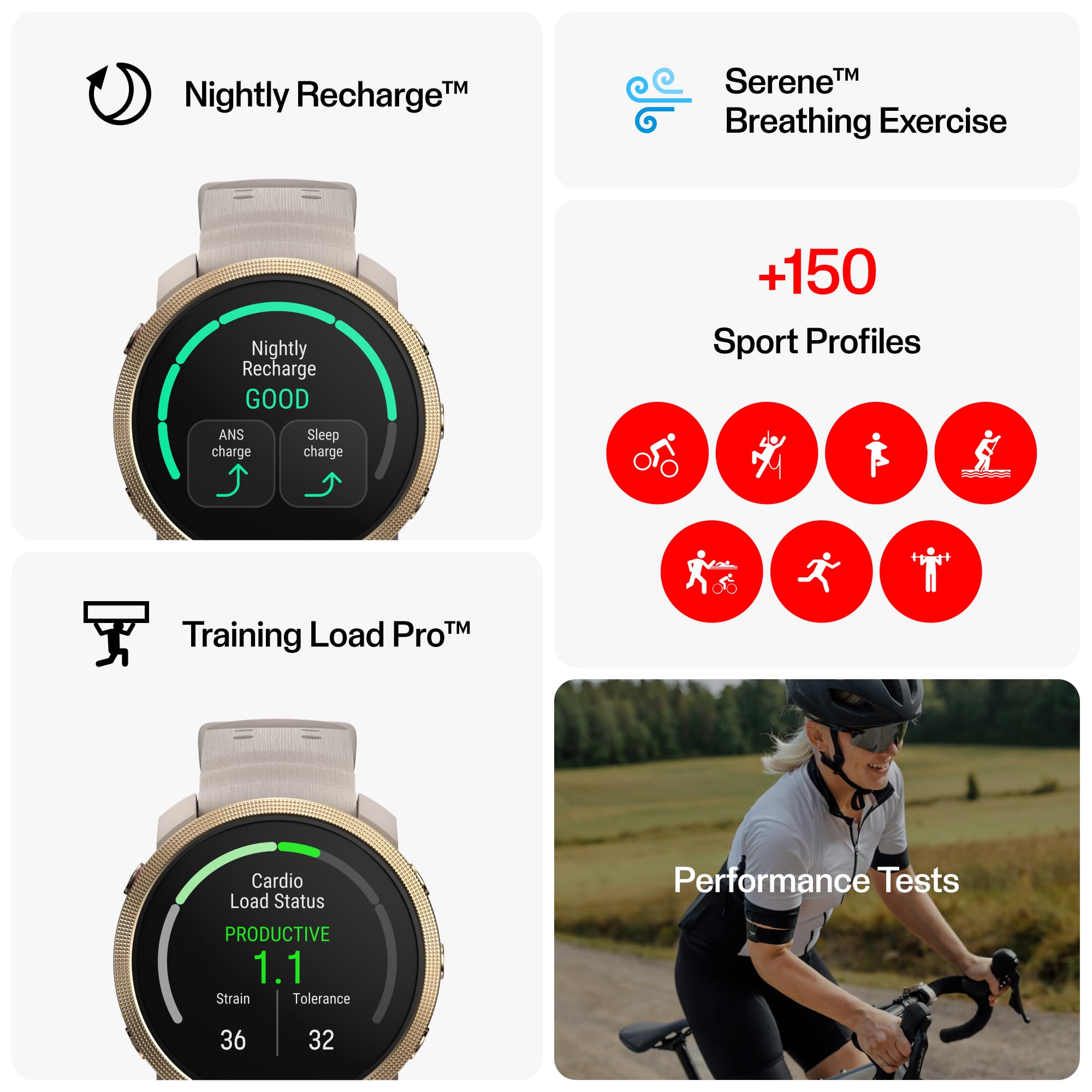[Comprehensive Sports Tracking & Recovery] Supports over 150 sports profiles, with performance tests, sleep tracking, and recovery tools like Nightly Recharge, SleepWise, and Training Load Pro to optimize your training routine.