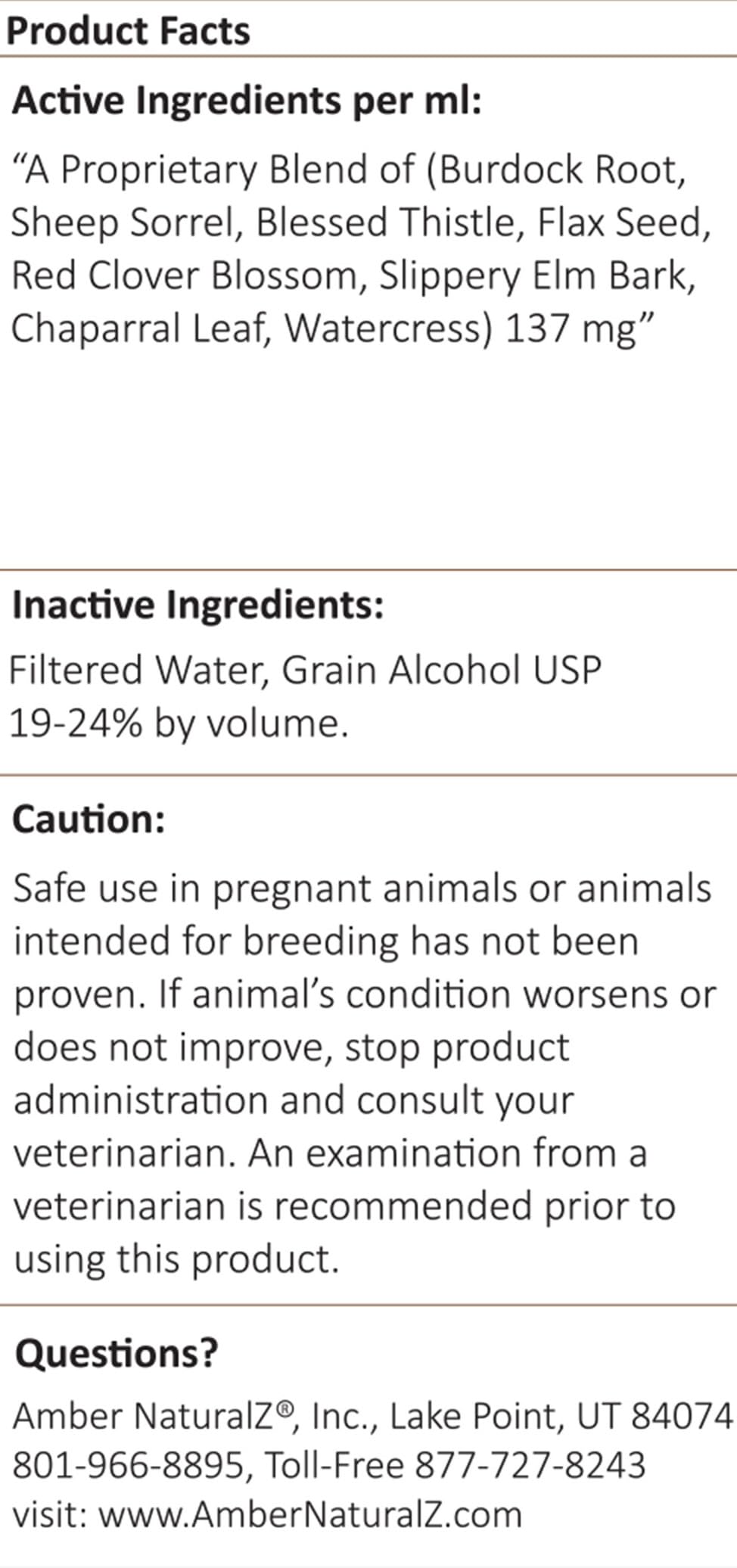 Herbal Blend Product: Amber NaturalZ Life Cell Support Herbal Supplement for Dog, Cat, Bird, Guinea Pig, and Rabbit is globally sourced and manufactured in the USA containing our proprietary blend of organic and wildcrafted herbs including Burdock Root, Sheep Sorrel, Blessed Thistle, Flax Seed, Red Clover Blossom, Slippery Elm Bark, Chaparral Leaf, and Watercress.