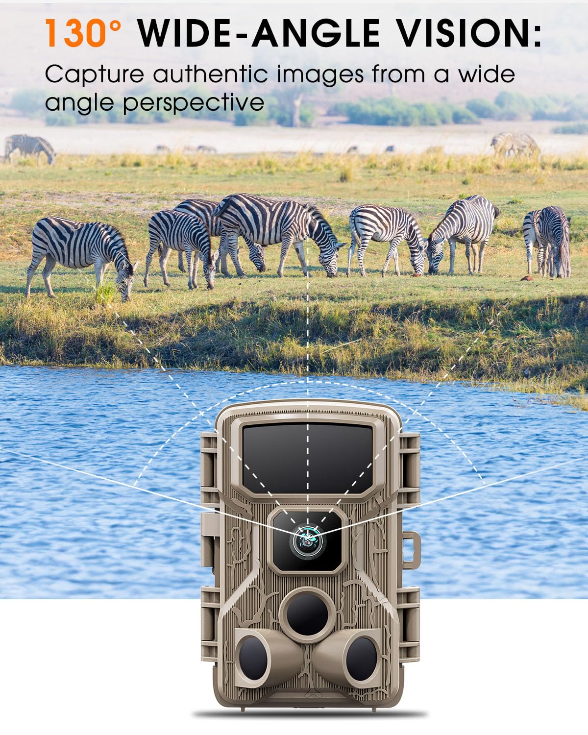 【130-degree wide-angle night vision】Punvoe game camera provides adaptive lighting to prevent over- or underexposure of night vision. This WiFi tracking camera allows you to experience excellent night vision with a wide angle of up to 130 degrees, which is perfect for capturing wildlife behavior without interference.