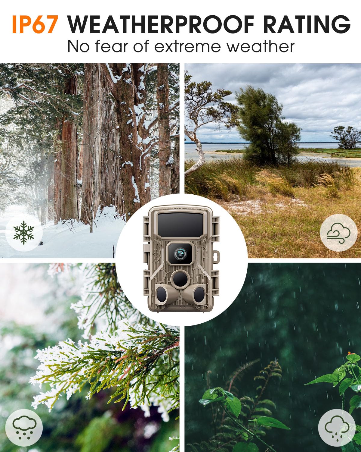 【Easy to Use and Set Up】You can easily use the trail camera by following the user manual or the instructional video. The trail game camera comes with a well-designed mounting bracket, which makes installation a breeze and allows you to place the camera at the perfect angle. It is an ideal gift for family, friends or wildlife lovers. It is versatile and can be used for applications such as wildlife monitoring, property security, and park/backyard/farm area monitoring.