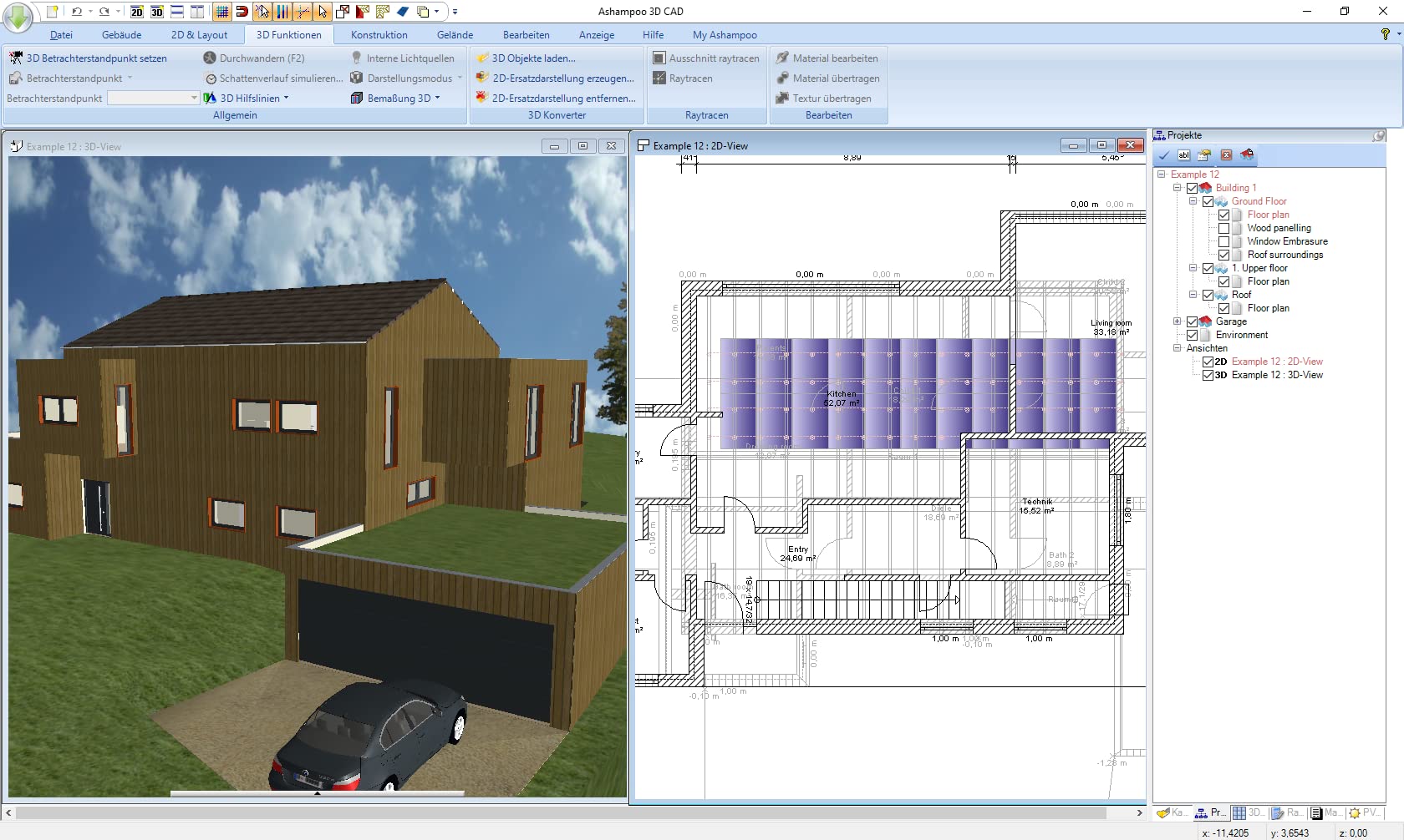 Plan photovoltaic panels and simulate exterior lighting and shadows