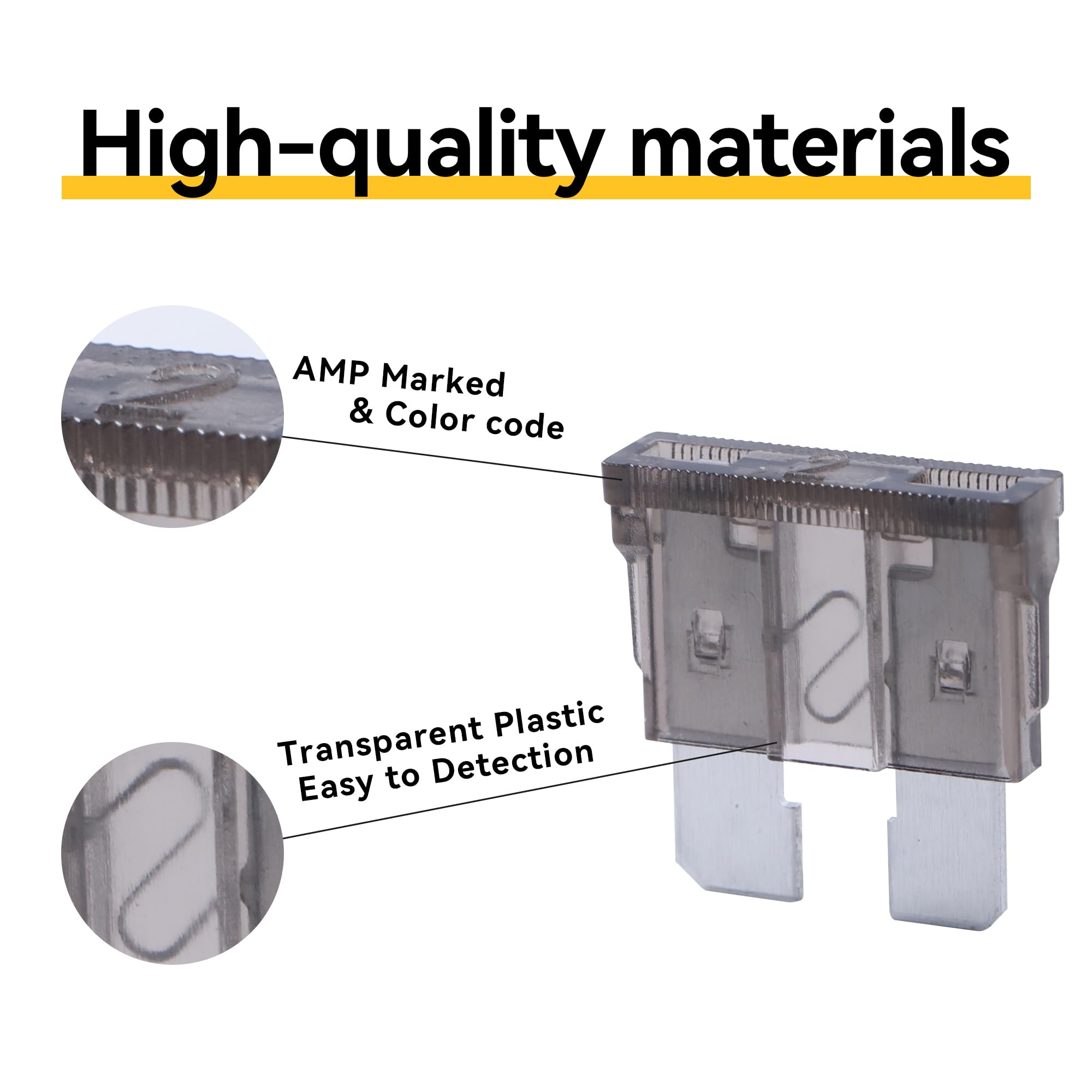 CONVENIENT DETECTION - The plug-in blade fuses are made from transparent PES with zinc alloy inserts and transparent housings for viewing the fuse link status and quick detection of a blown fuse.