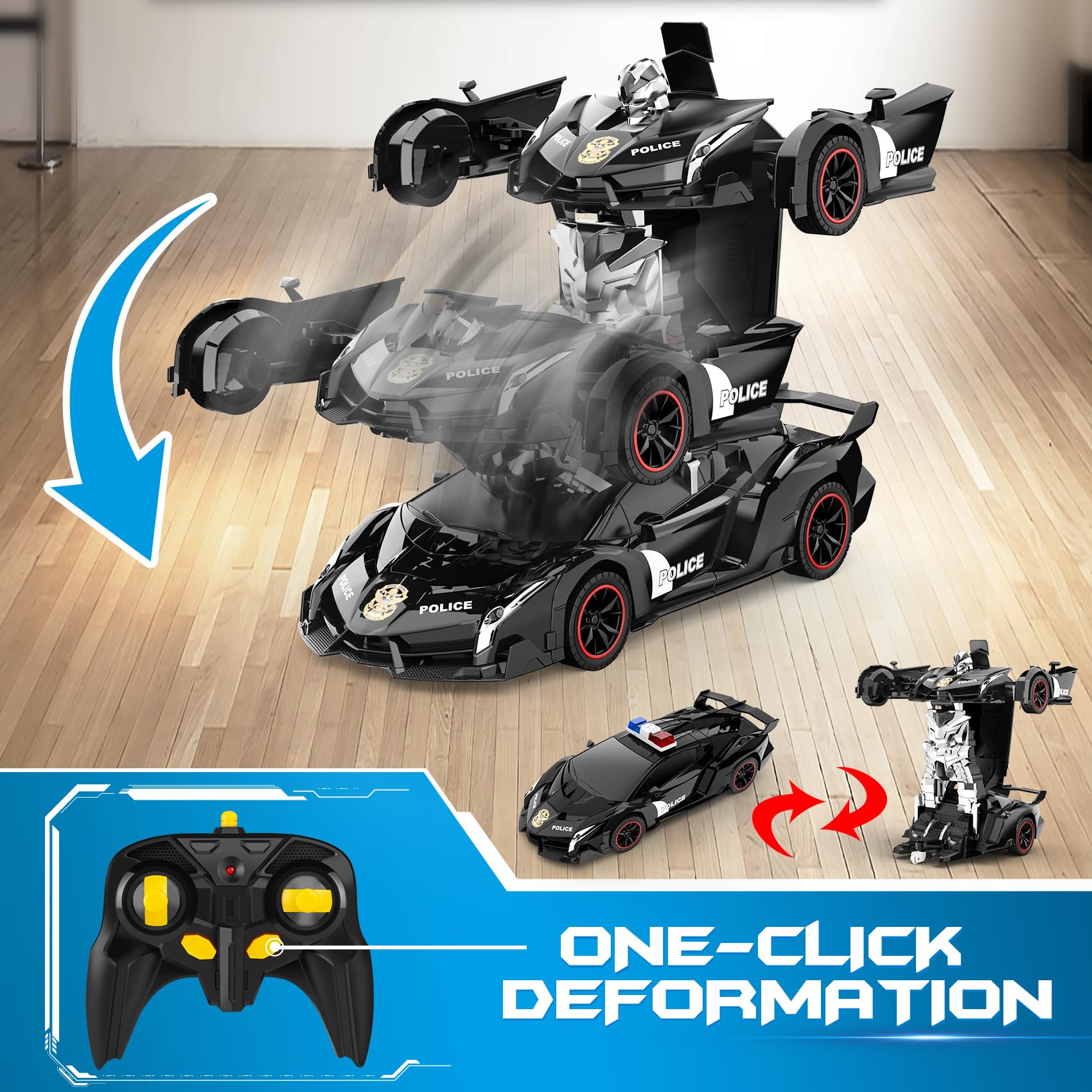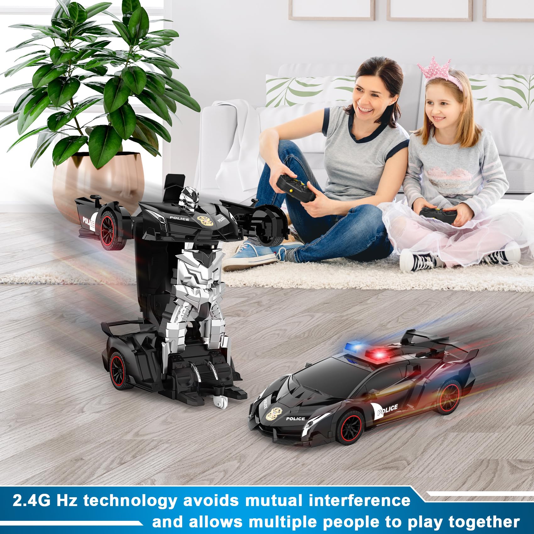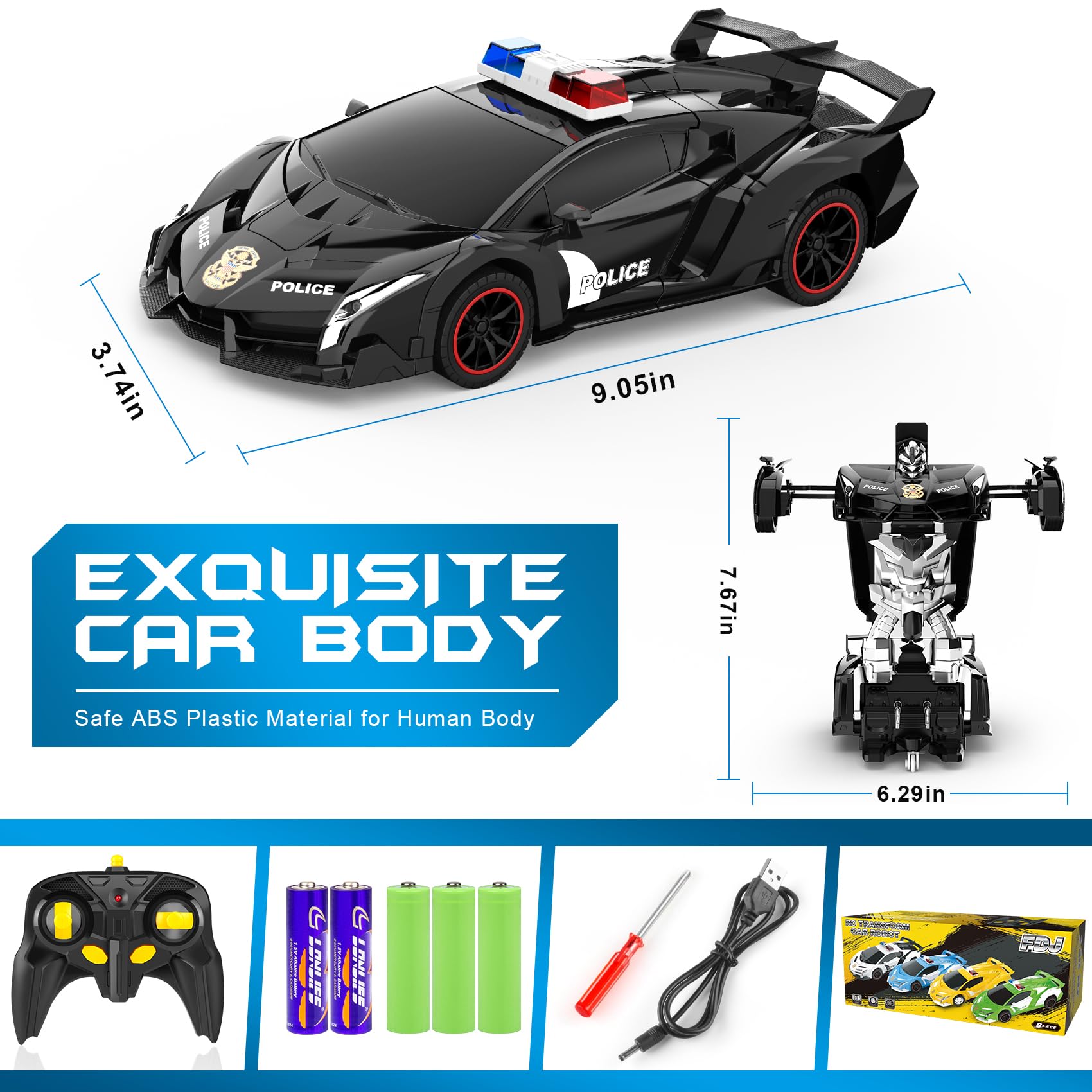 Two In-One Toy Cars: Combined with car and robot, this RC transformer car could transform automatically from car to robot back and forth fluently when you press the button on the remote control. Keep your child entertained with the toy that never gets old - cruise down the streets in a drifting sports car or man the battlefield with an intergalactic robot.