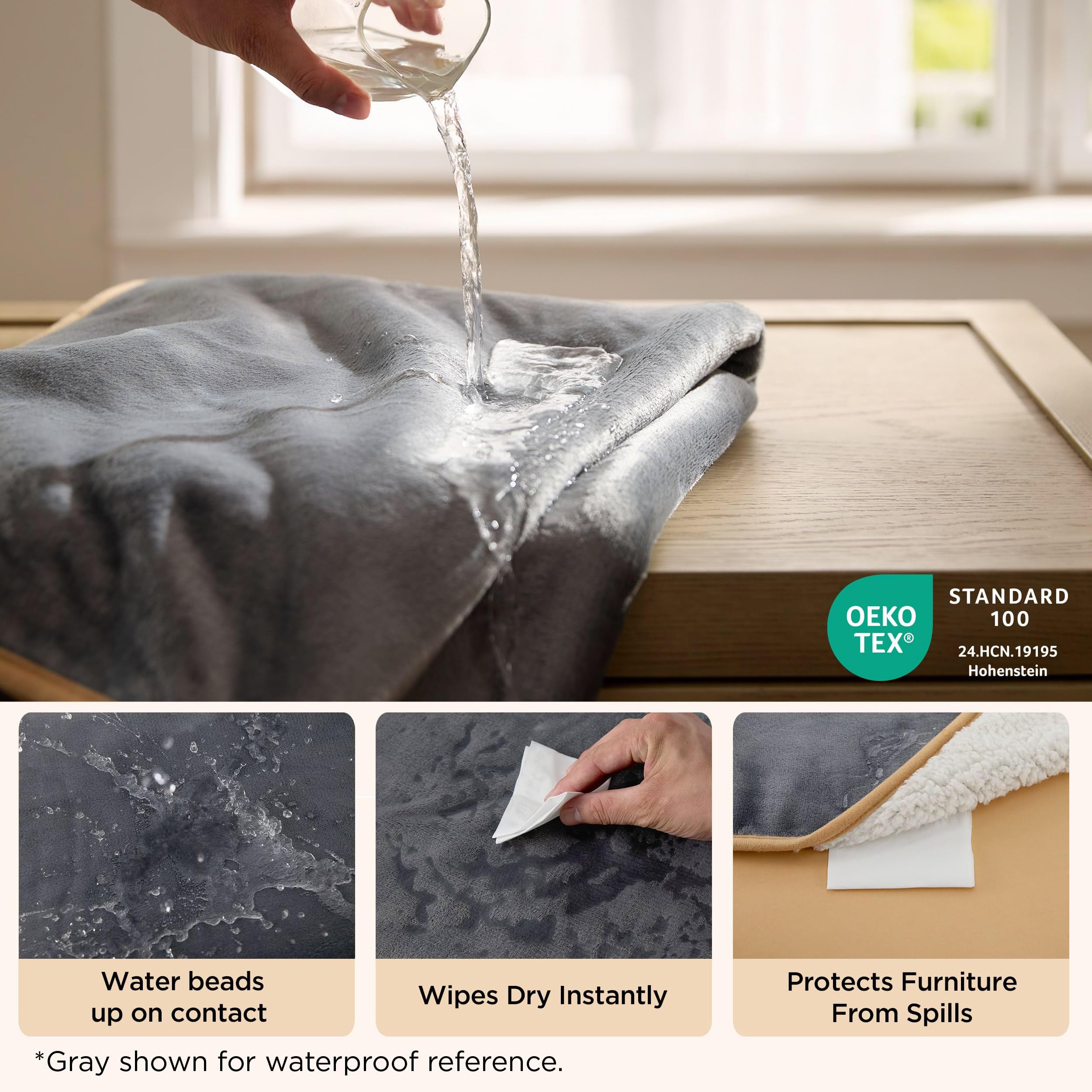 Waterproof & Leakproof Design: Featuring a central waterproof membrane, this blanket effectively prevents liquid from leaking in either direction—whether from the flannel fleece side to the Sherpa side, or vice versa. Your furniture stays dry, no matter how you place it.