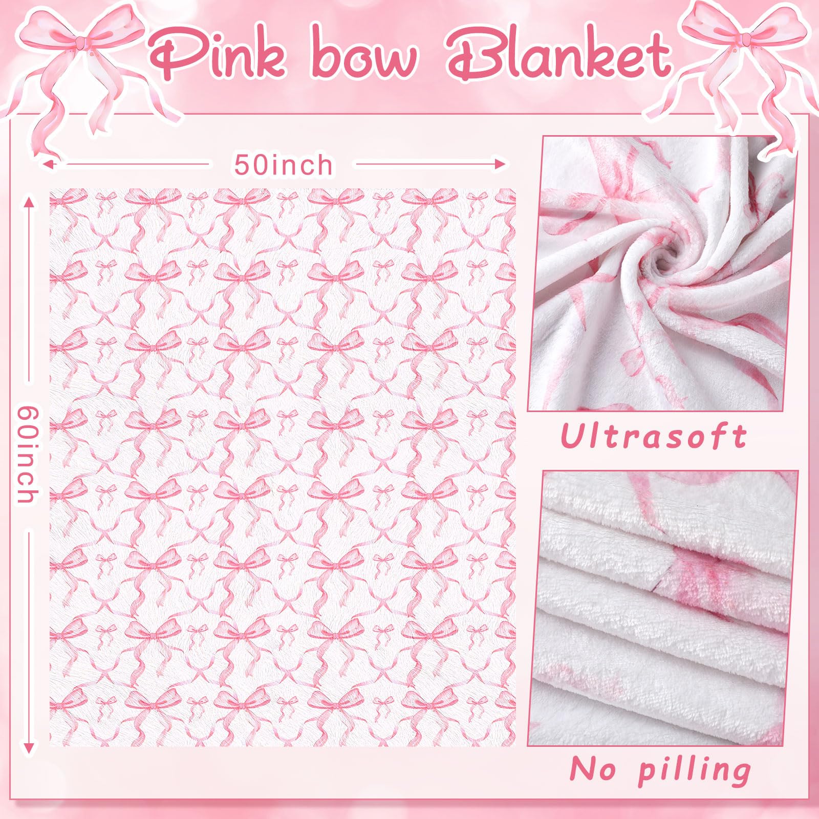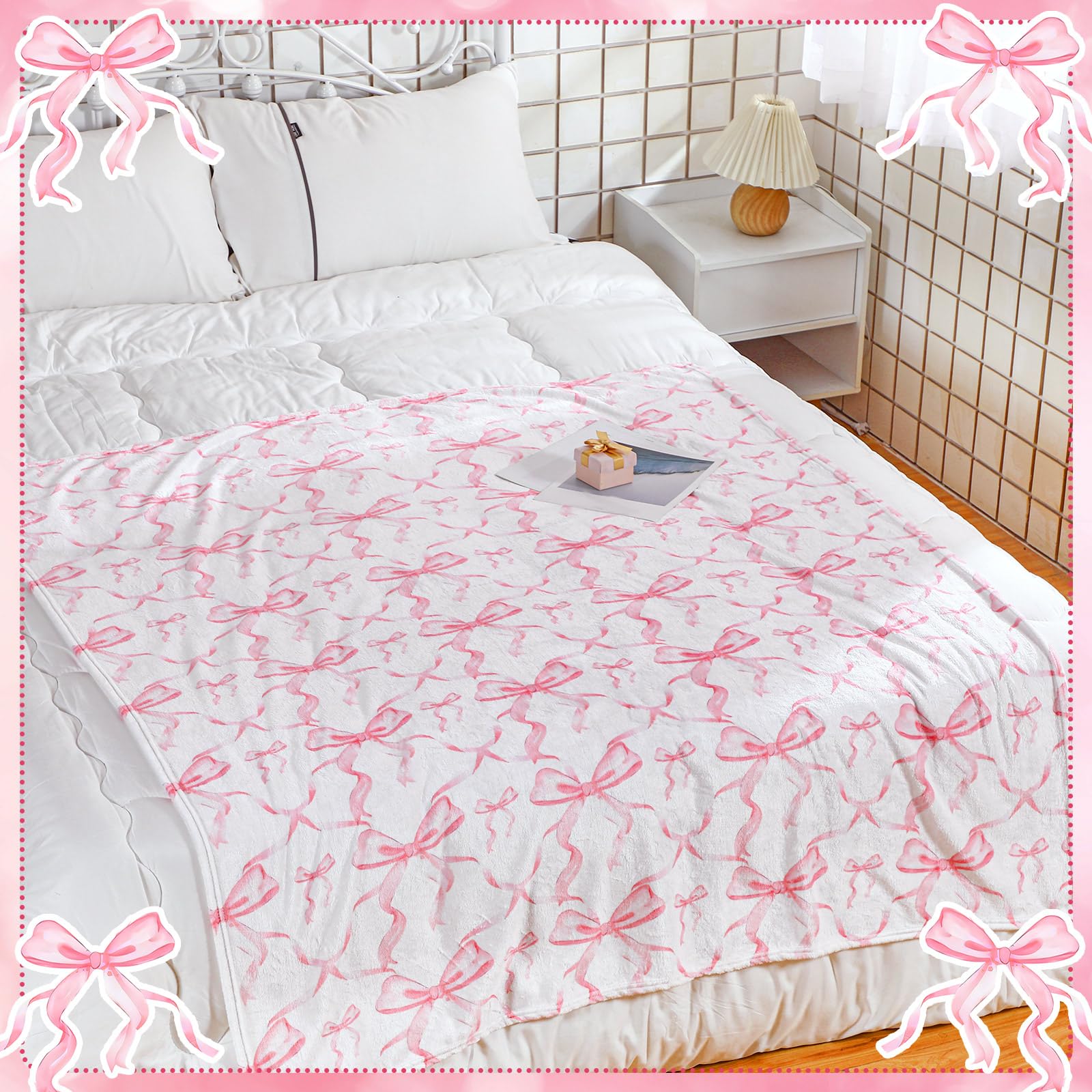 Soft Flannel Material: cute pink bow throw blanket is made of quality flannel, soft and comfortable; Providing warmth with light weight, this coquette Bownot blanket serves as an ideal accessory for all seasons; You can enjoy this fluffy blanket with its Fluffy, cloud-like touch