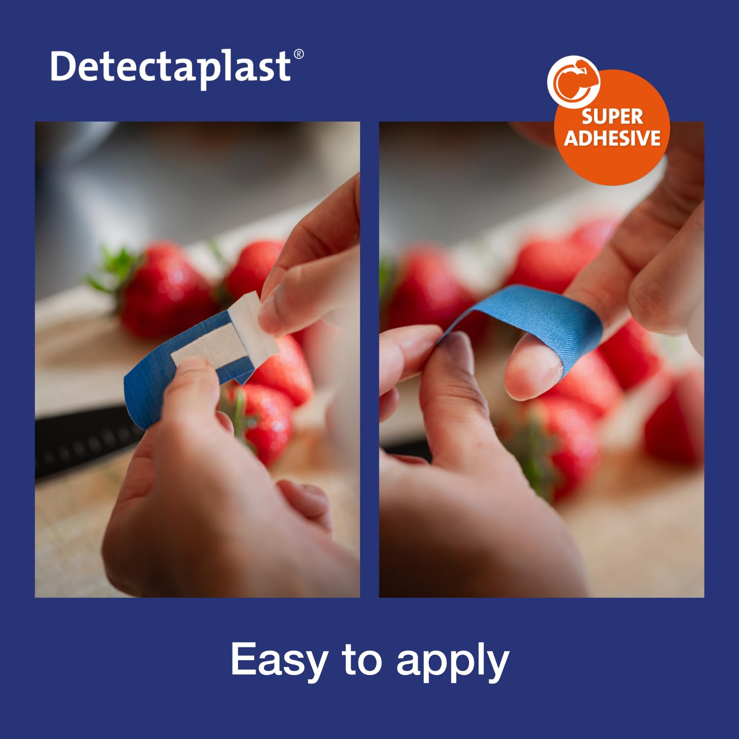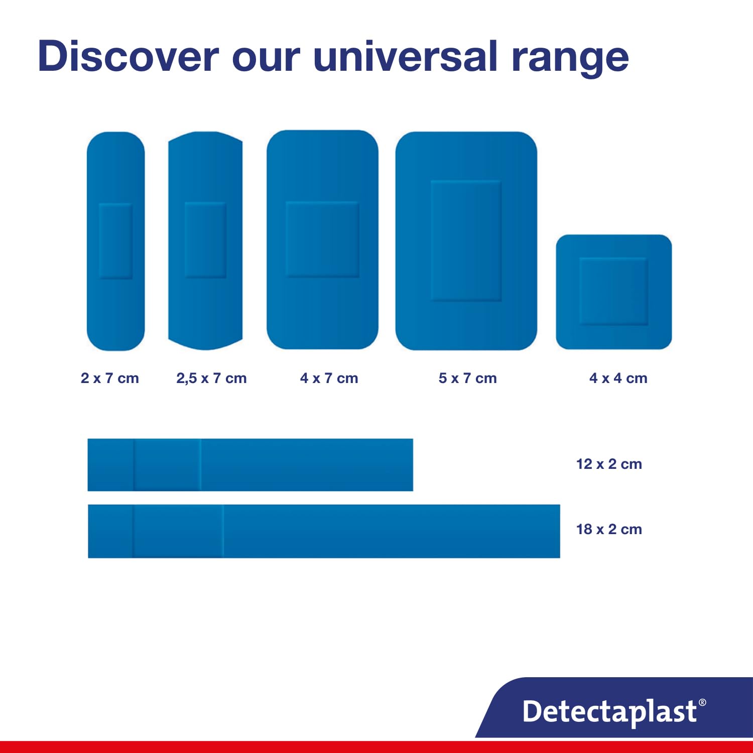 VARIOUS SIZES The Detectaplast blue bandaids catering come in various sizes to be able to take care of every body area. In addition to the classic dimensions, we have long finger bandaids, H-shaped knuckle bandaids, butterfly bandaids and much more.