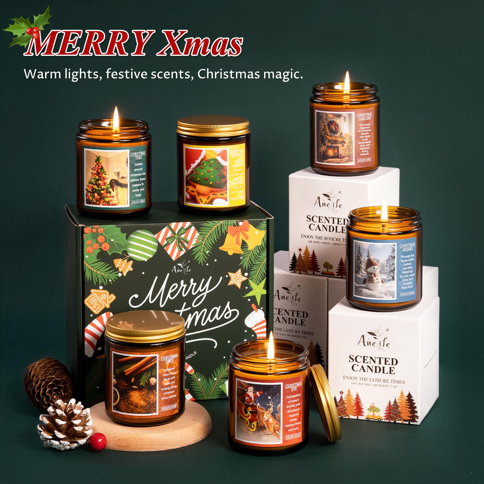 π―οΈ CLEAN BURNING SOY WAX β Made from natural soy wax and a lead-free cotton wick for a smooth, even burn. Each candle burns up to 50 hours, offering long-lasting comfort throughout the holiday season.