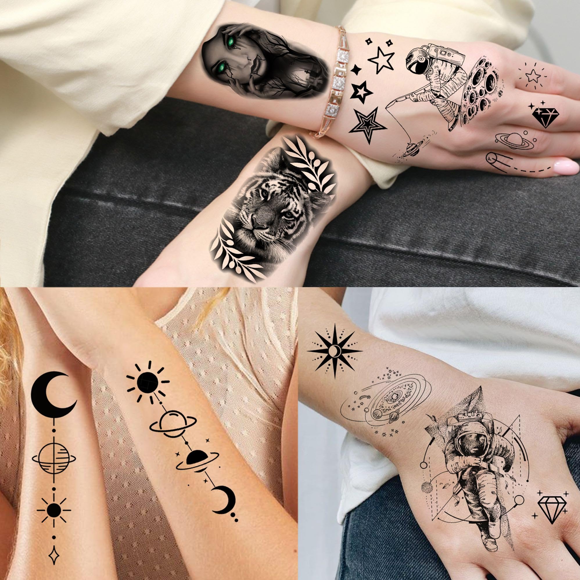 đă70 Sheets SHELYEXIEN Brand Watercolor Galaxy Planets Temporary Tattoos For Men Women Adultsă Fake Sleeve Tattoos For Women Girls Including 3D Gothic Tatoos Universe Star Moon Spider Web Cross Birds Scorpion Bat Ghost Elephant Flower Floral Pirate Compass Anchor Butterfly Skull Skeleton Maori Totem Wolf Tiger Lion Dragon Eagle Owl Bear Crown Mountain Sea Wave Snake Tree infinity Letter Words Quotes Abstract ECG Feather Tattoos Clock Gangster Minimalism Coyote Feather Astronaut Whale Lotus Dreamcatcher Animals Outer Space Coyote Beast.