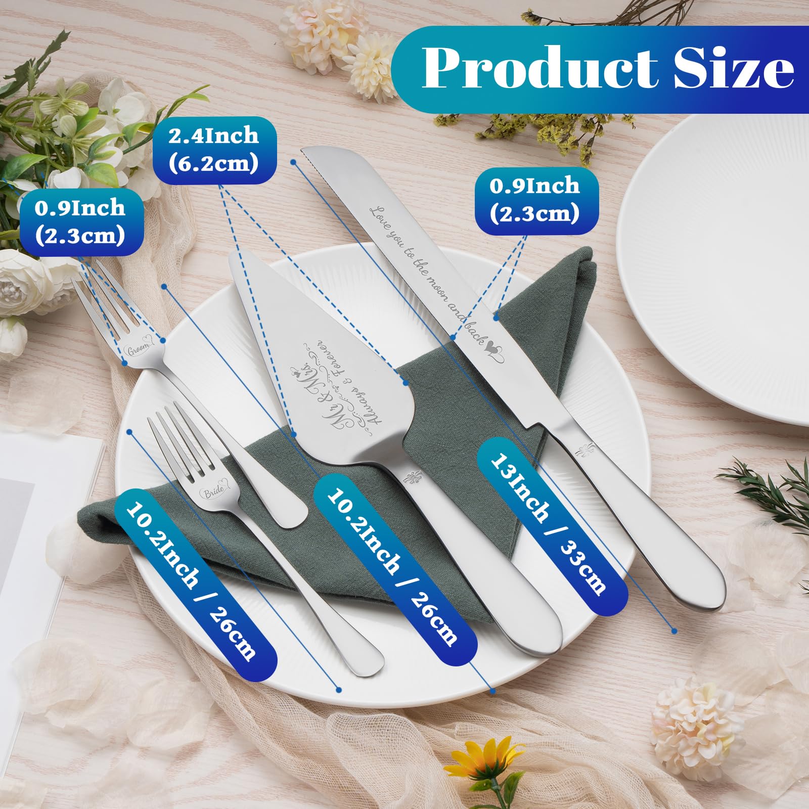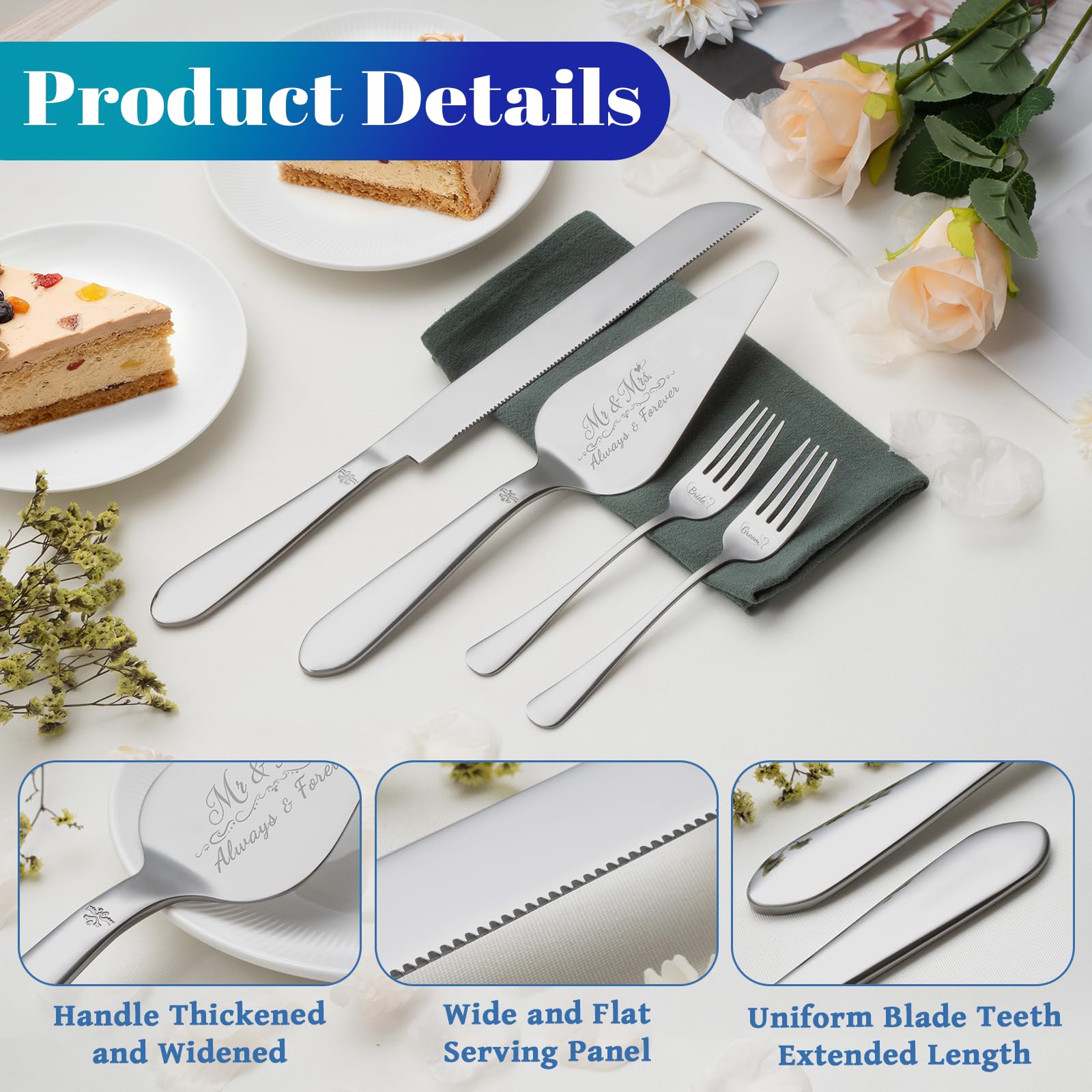 Durability: The cake cutting set for wedding with all stainless steel handles and spatulas, that is rust and corrosion resistant, sturdy and not easy to bend, and won't come loose and separate and fall off