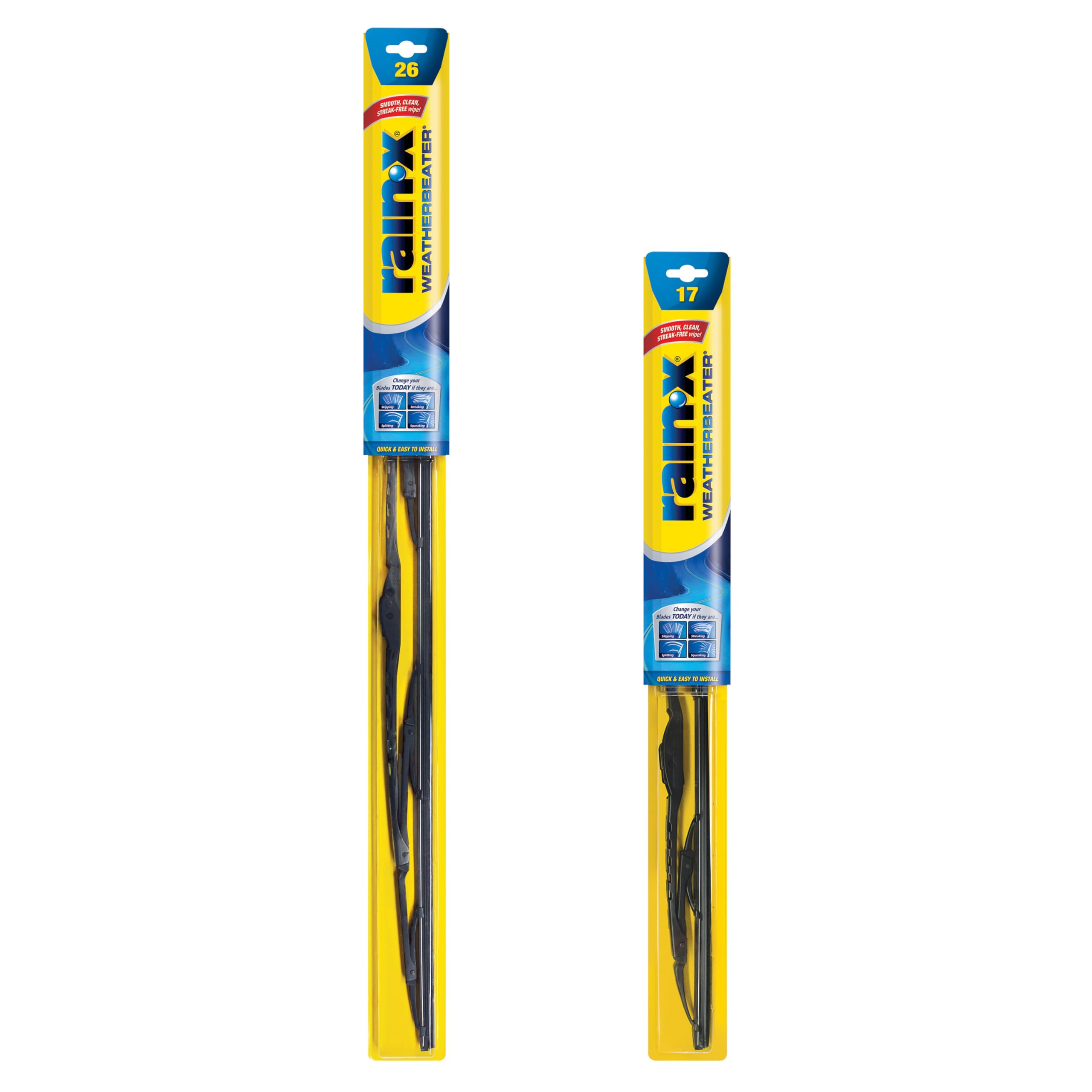 Rain-X, a recognized and respected name in wiper blades for almost 20 years, is committed to providing you with the confidence of improved driving visibility. For over 15 years, Rain-X WeatherBeater (the original WeatherBeater wiper blade) is still known and trusted for its quality, durability, and value. WeatherBeater has been designed to be a high-quality traditional wiper blade that meets or exceeds all original equipment manufacturers' standards for quality, durability, and construction. This conventional blade features a natural rubber squeegee, a classic galvanized steel frame, multiple pressure points, and embedded friction reducers. The natural rubber squeegee provides resistance to cracking and splitting caused by weather, windshield wiper fluid, and road salt. The galvanized steel frame provides long-lasting strength and durability while also preventing rust and corrosion. Multiple pressure points and embedded friction reducers enable even pressure distribution across the length of the blade and help provide a clean wipe. If you need additional help with determining the right wiper blade size for your car, reference our Blade Finder or Amazon's Confirmed Fit program. If you need help with installing your new wiper blades, installation videos can be found by scanning the QR code on the back of your wiper blade’s packaging.