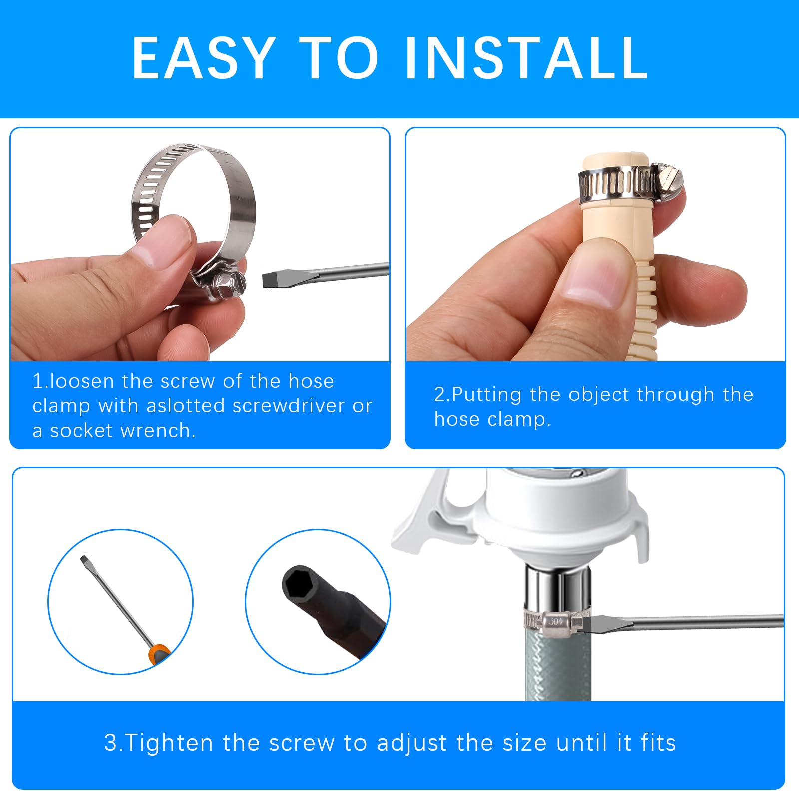 【EASY INSTALLATION】 These worm gear hose clamps are easy to install, simply thread the pipe through the hose clamp and adjust the screws on the clamp to complete the installation, securely every time, for a variety of projects. Our adjustable hose clamps are perfect for securing hoses in automotive, plumbing and mechanical applications