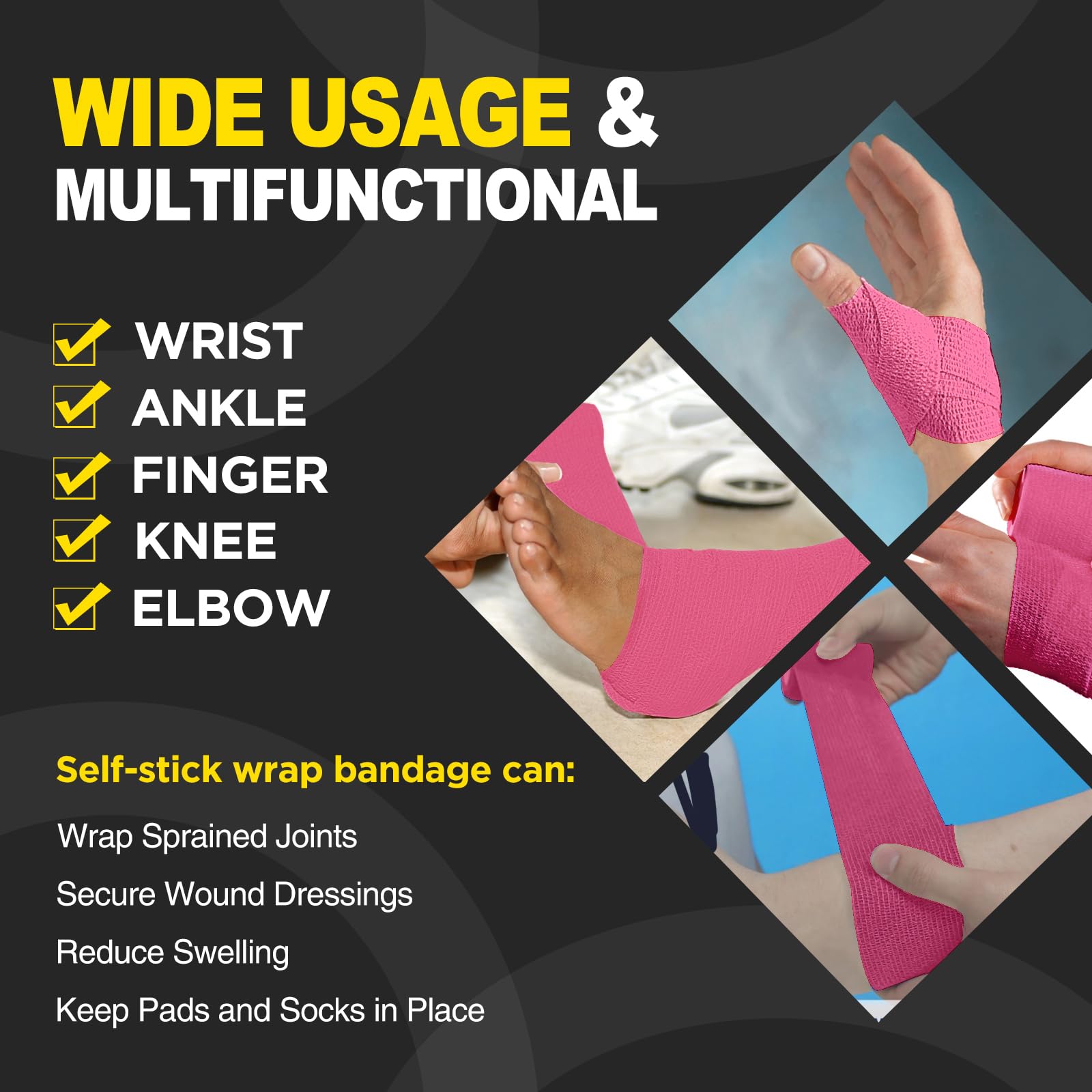 ELASTIC BANDAGE: High levels of flexibility mean cohesive bandage can be wrapped as tight or loose as needed, which is better than non-stretch adhesive tape; It can conform to various body contours without restriction