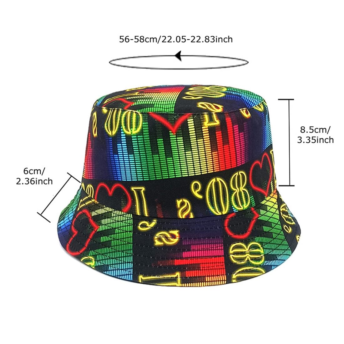 Whether youare goingto a party, outing, or enjoyinga day at the beach, our bucket hat will make you the center of attention. Its unique patterns perfectlymatch any outfit, allowing you to showcase your individual the nostalgia of the 80s and 90s with our 80s 90s Bucket Hat.