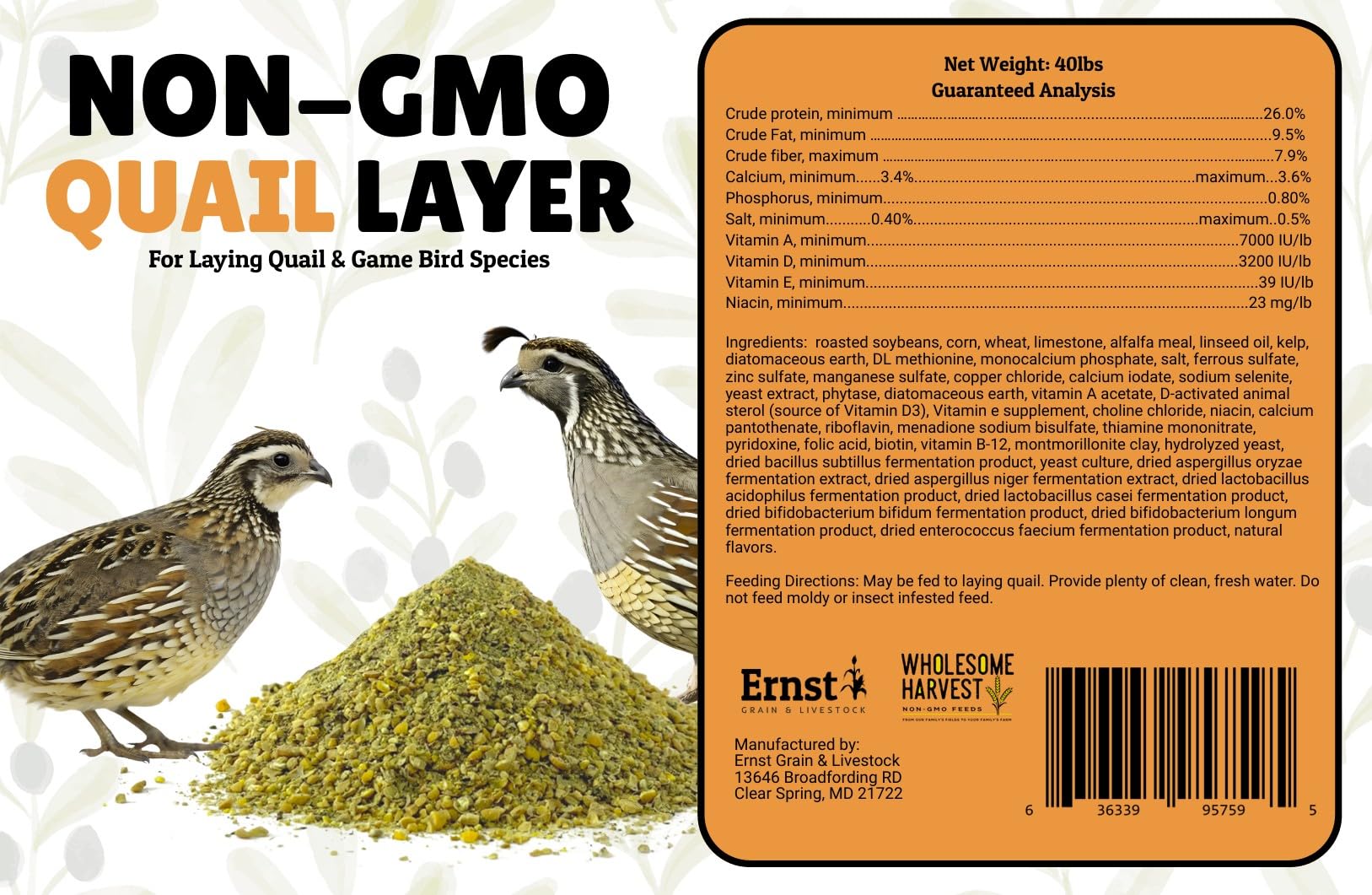 Non-GMO Grain Blend: Made with a wholesome, Non-GMO blend of grains, our quail layer feed is free from byproducts, providing a natural, nutritious diet essential for healthy egg production and overall quail wellness.