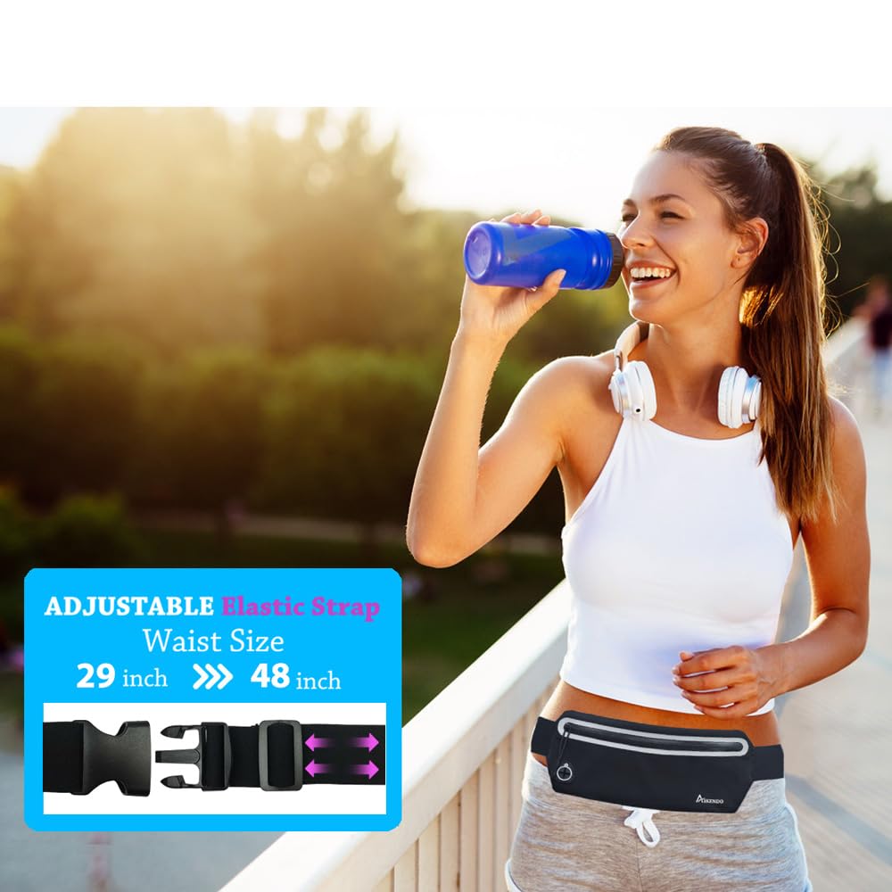 【Adjustable, Fits All Sizes】 Don't waste your time with other five or six different sizes running fanny pack, difficult to choose right size fit belt. AIKENDO running waist pack Fits waist sizes from 28.7" to 48" with elastic and adjustable strap, the sports waist pouch will fit to all of your family members.