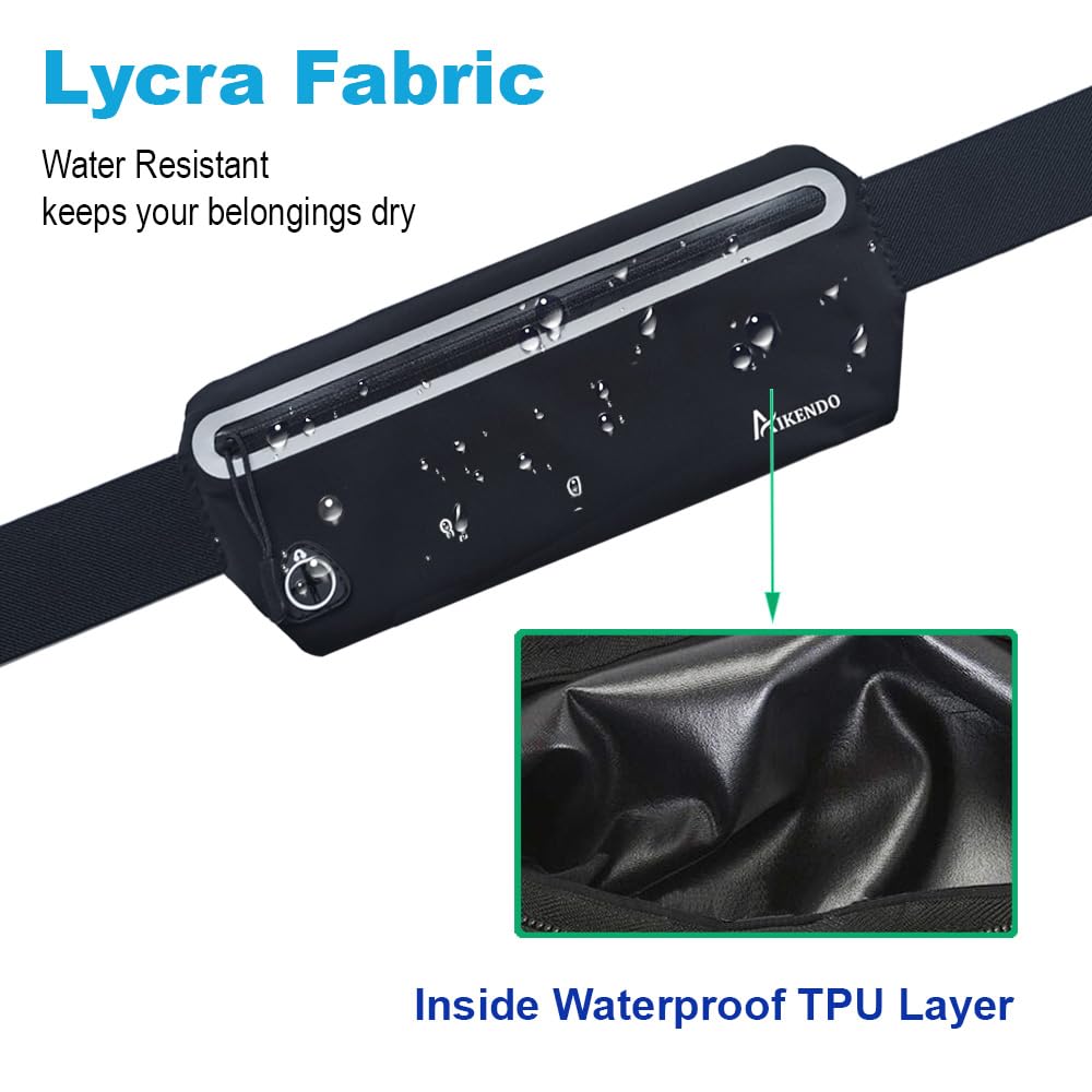 【WATER RESISTANT】: Waterproof TPU lining protect your phone and other valuables safe and dry from sweat and weather conditions( (not fully waterproof). The running waist pack has a special HEADPHONE HOLE design, you can enjoy music all the time.