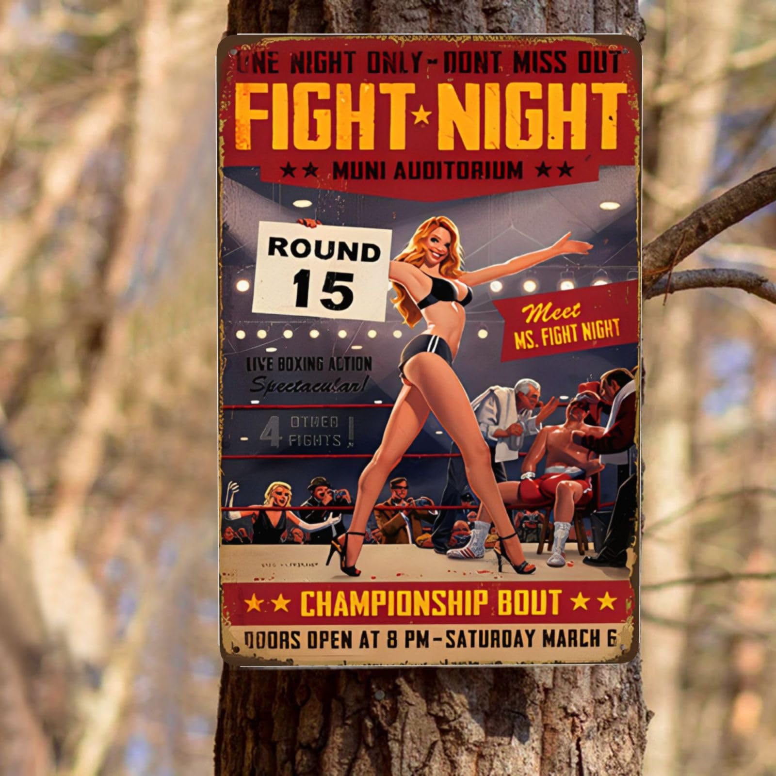 This metal sign features a sexy girl poster design, Elevate the ambiance of your man cave, bar, garage, pub, hotel, or any space with this eye-catching wall art decor