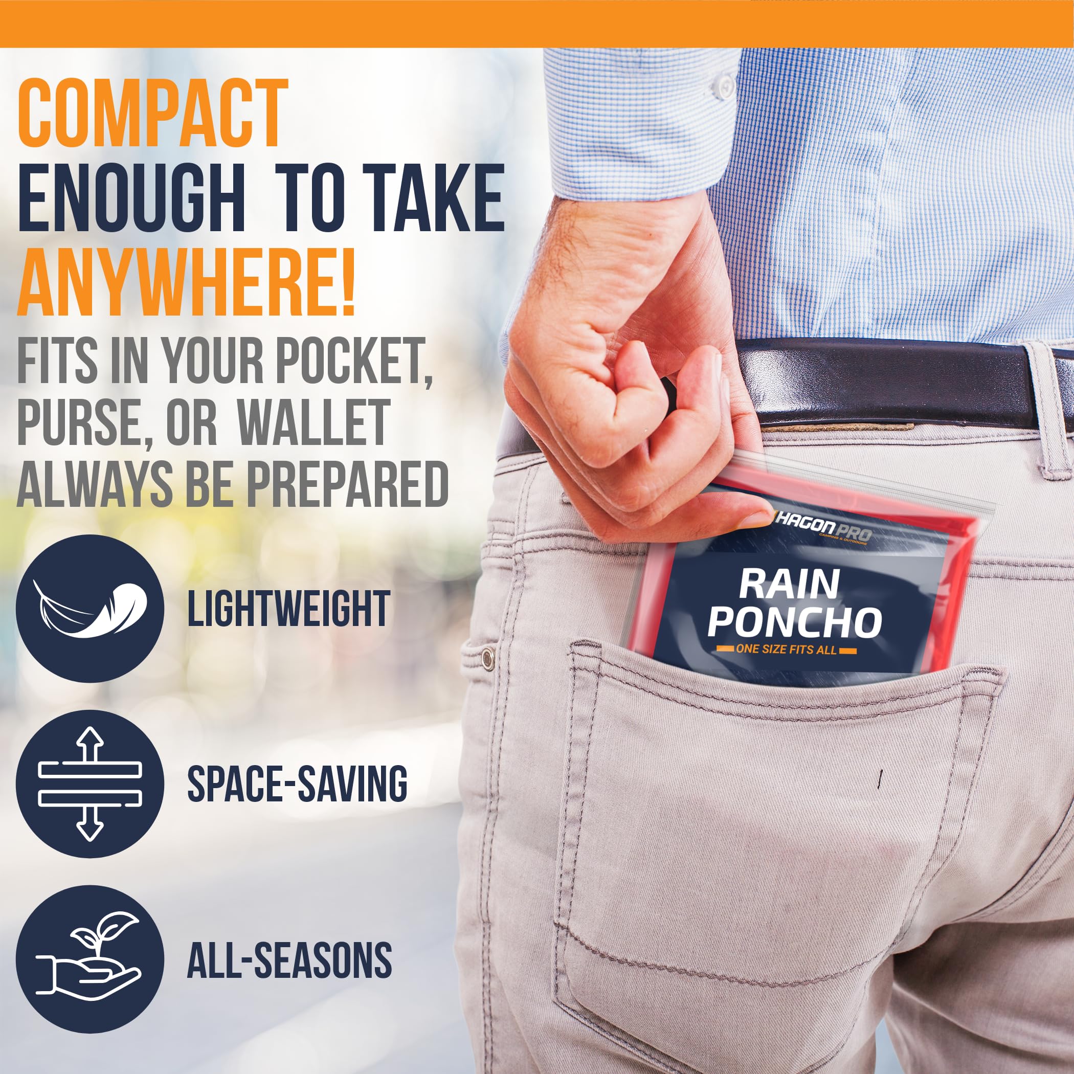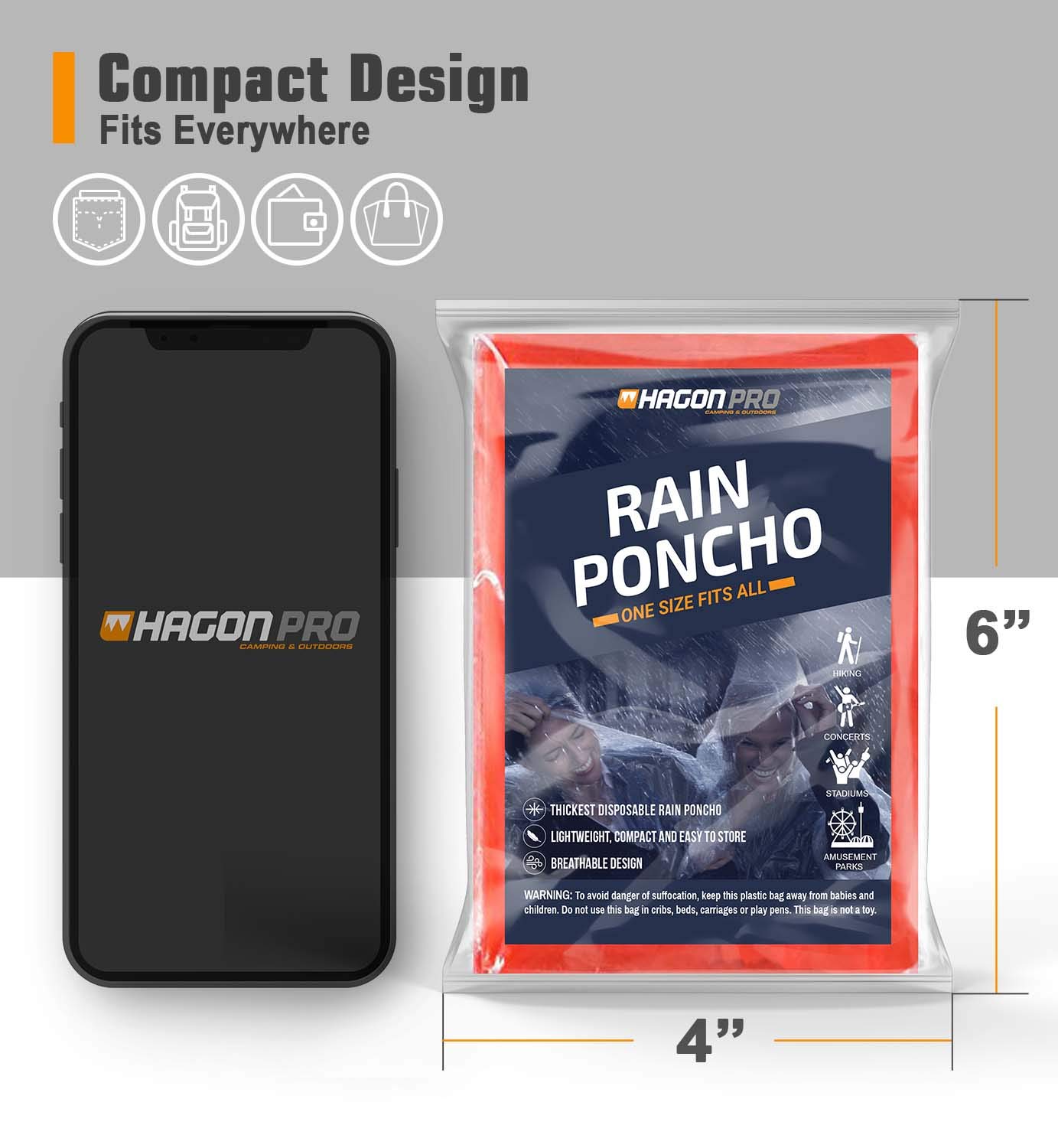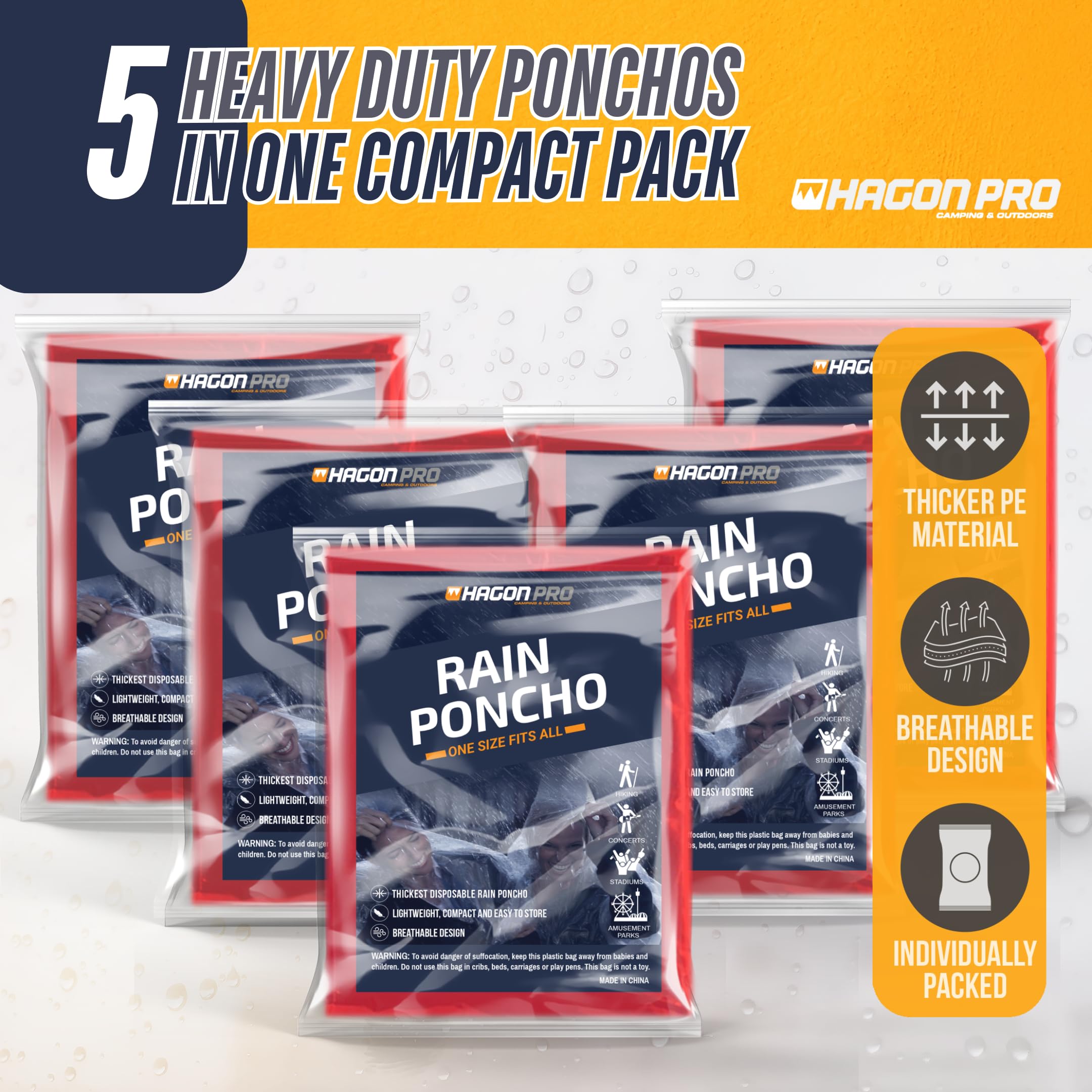 Bulk-Ready for Any Need: The Hagon PRO disposable rain ponchos for adults 5 pack is perfect for bulk use at charity drives, group outings, or donating to homeless shelters. Designed with convenience and care, these unisex ponchos are a reliable solution for any large-scale need, from community events to emergency preparedness kits