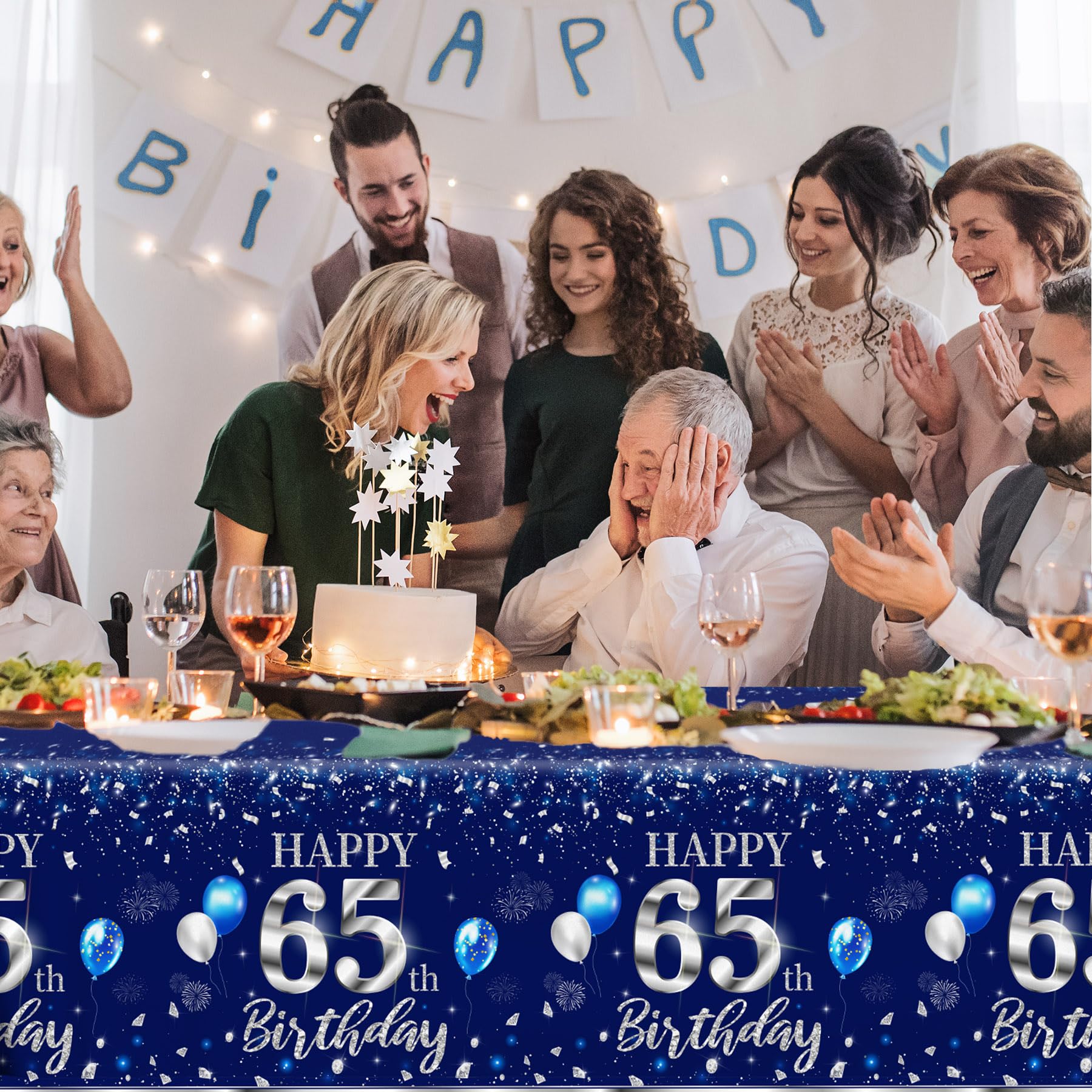 【Package Includes】You will get 3 rectangular 65th birthday tablecloth for men women.The size of each piece is about 70.8.8X42.5 inches, and the quantity size is enough to meet your birthday party decoration and replacement needs.