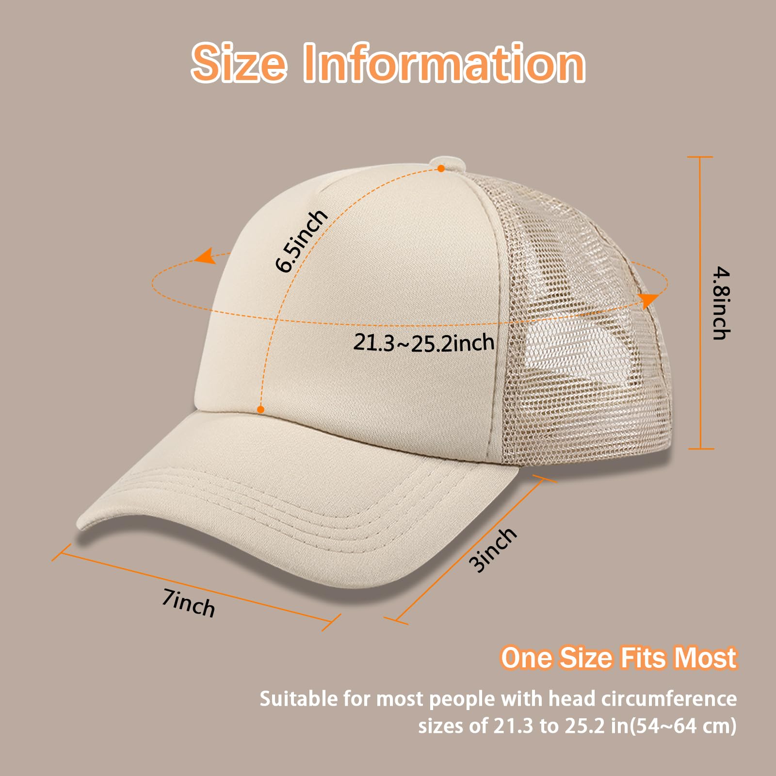 【One Size Fits Most】 These snapback caps come with an adjustable plastic buckle, accommodating most head sizes with a circumference of approximately 54-64 cm (21.5-25.2inches). Suitable for both women and men, these caps are an excellent choice for blank trucker hats, fitting a wide range of head shapes