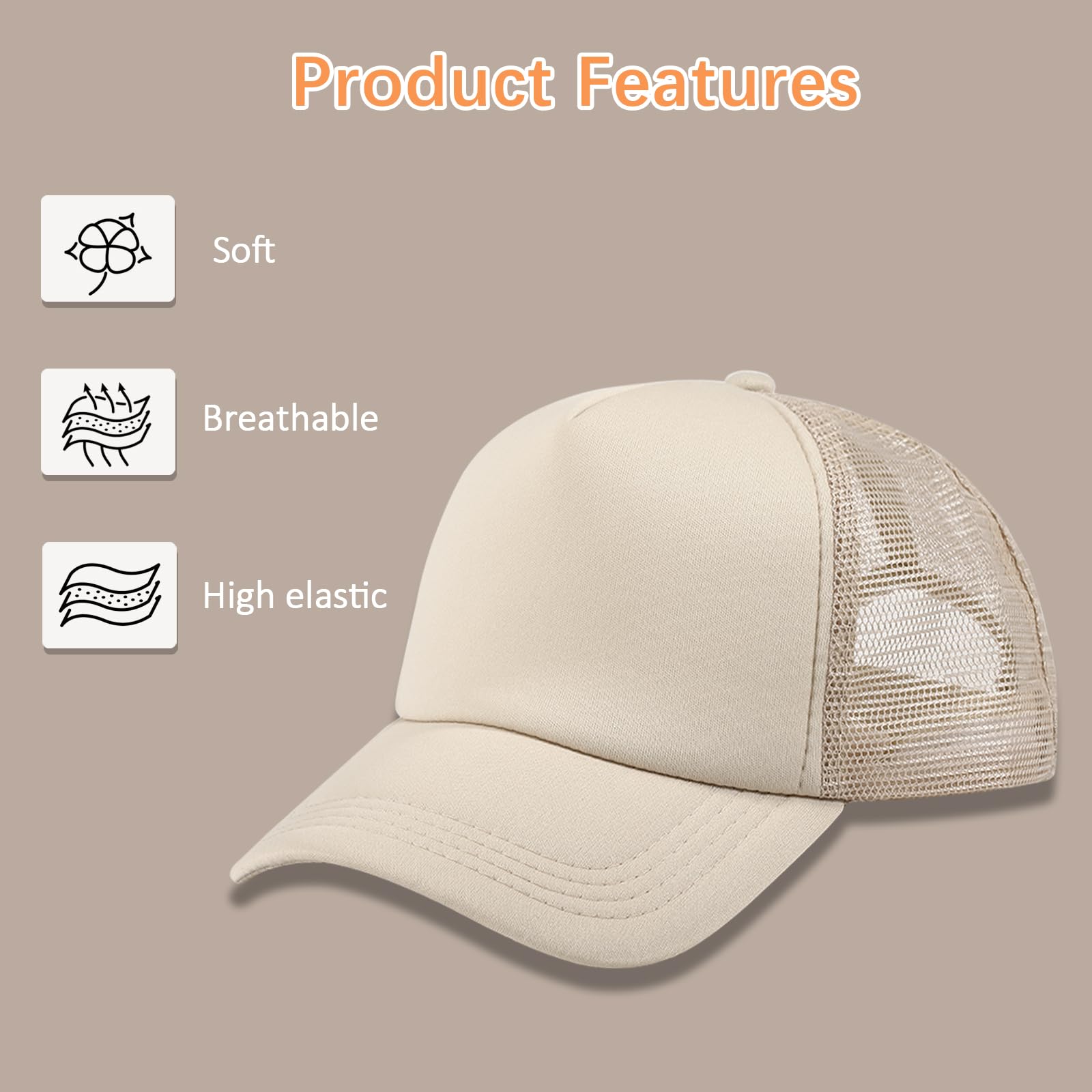 【Package includes】5 pack Sublimation Blanks hats, the front of the trucker cap is designed with blank, you can choose your favorite pattern, logo or photo to design on the hat through screen printing, heat transfer printing, embroidery, 3D embroidery and other ways, wearing your own hat, let you stand out in the crowd