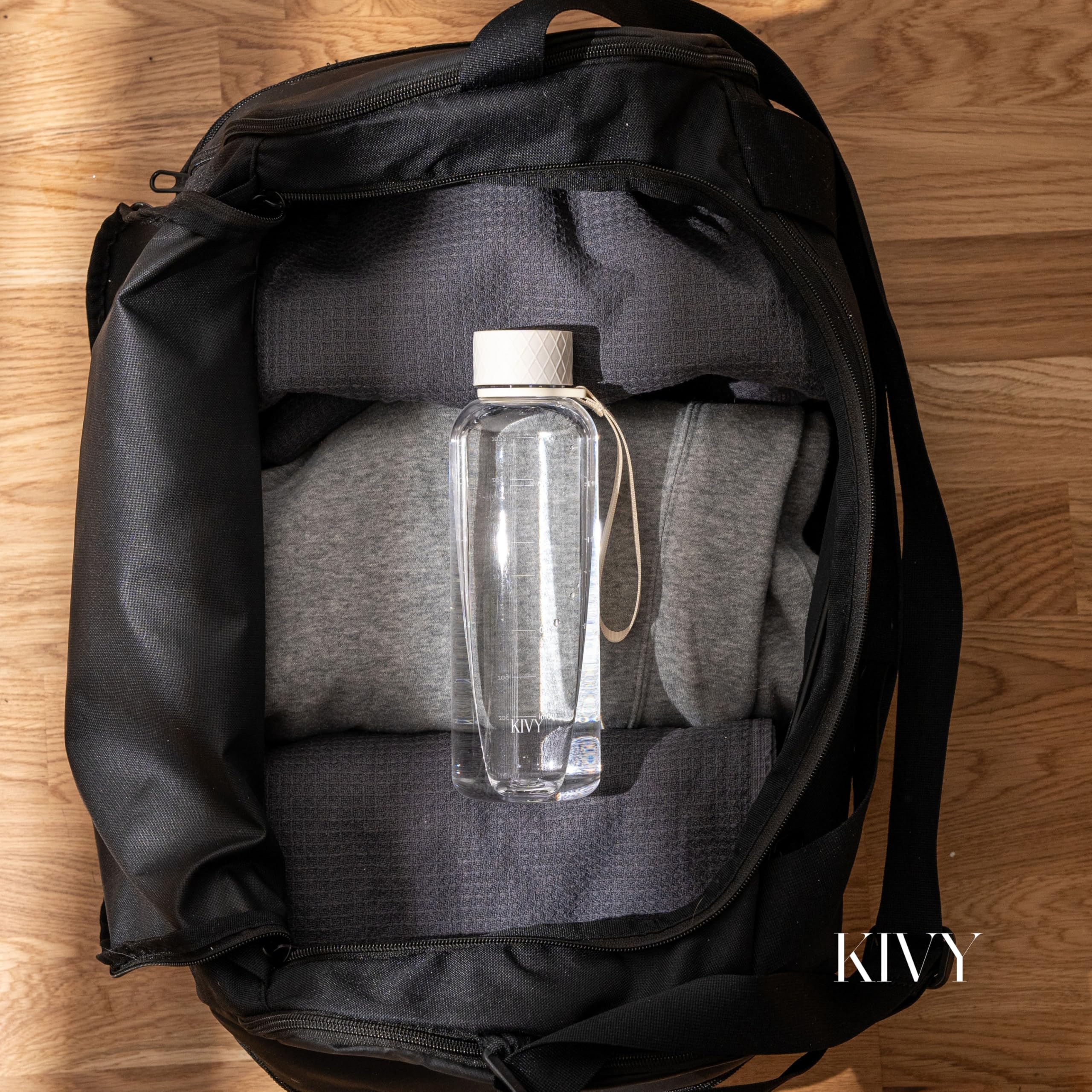 DETAILS: Small water bottle with measurements & screw top: Volume 22oz | Height 8.2in | ⌀ 2.7in | Weight 0.2lbs | Comes in a minimalist and secure packaging.