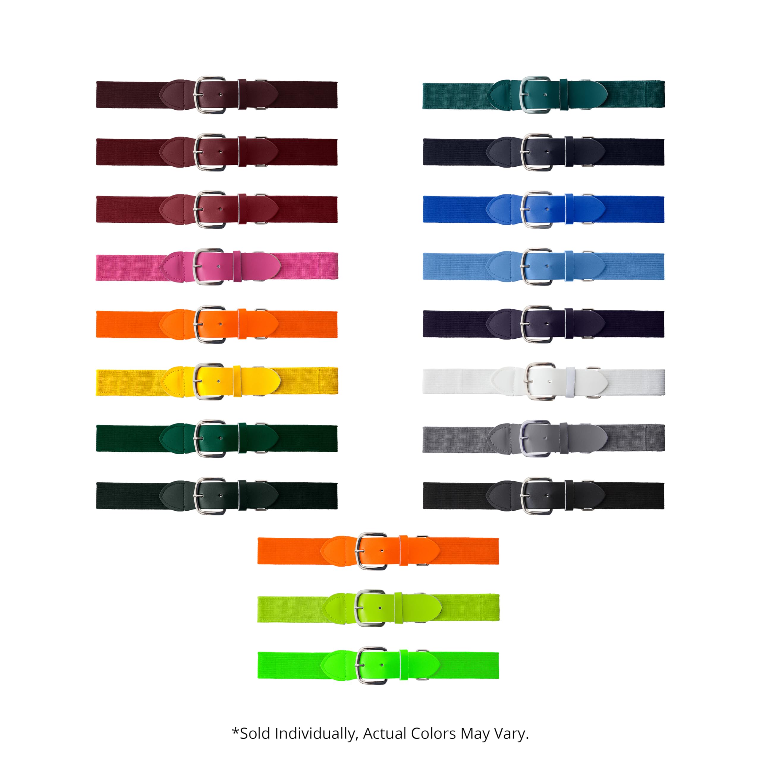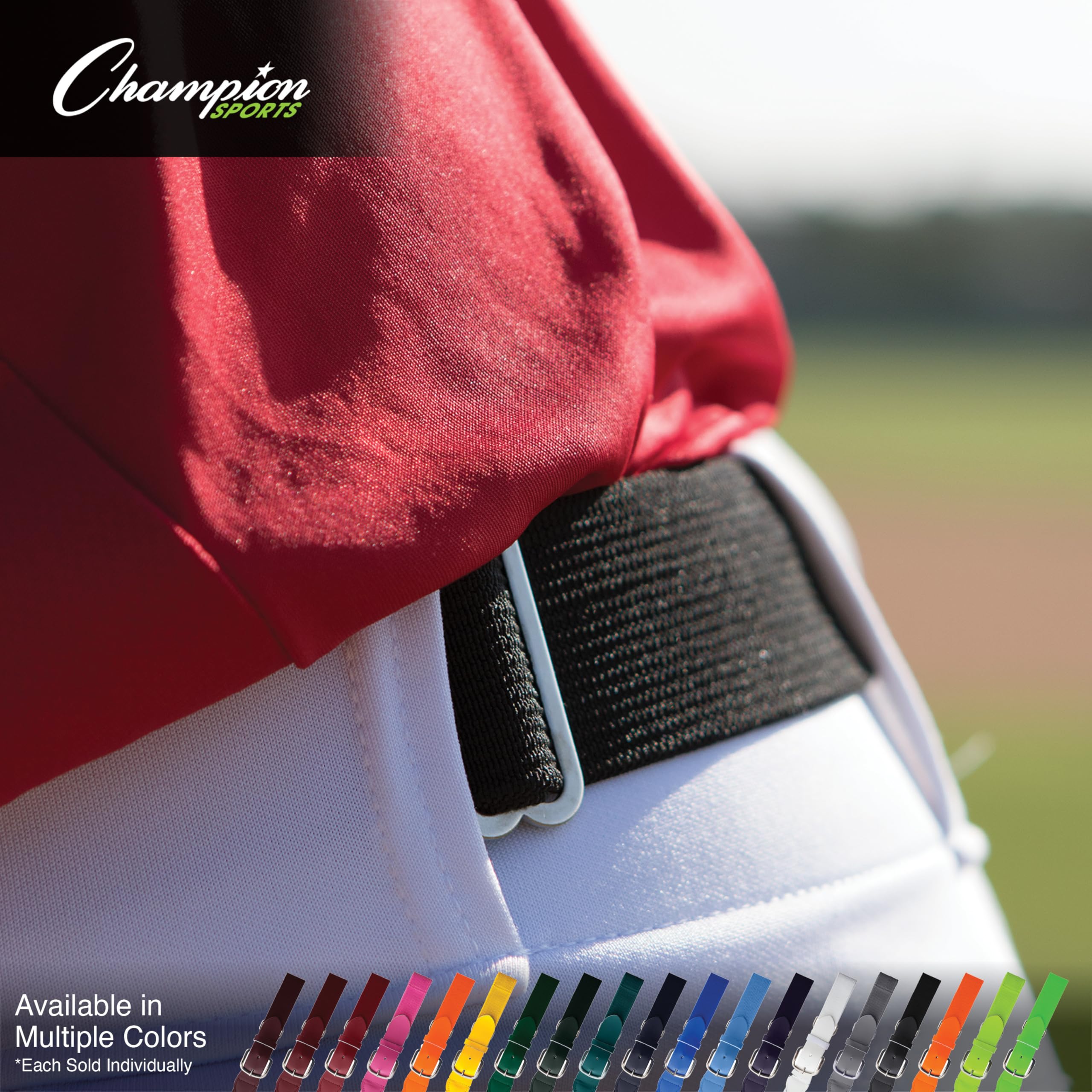 Ensure your uniform stays put with the Champion Sports Uniform Belt. Designed for versatility, this belt features an adjustable elastic band that stretches to fit youth and adult waists. A sturdy metal buckle and leather tab offer lasting durability, while the 1.5" width provides a clean, professional look. Choose from a wide range of colors to perfectly match your team's uniform.