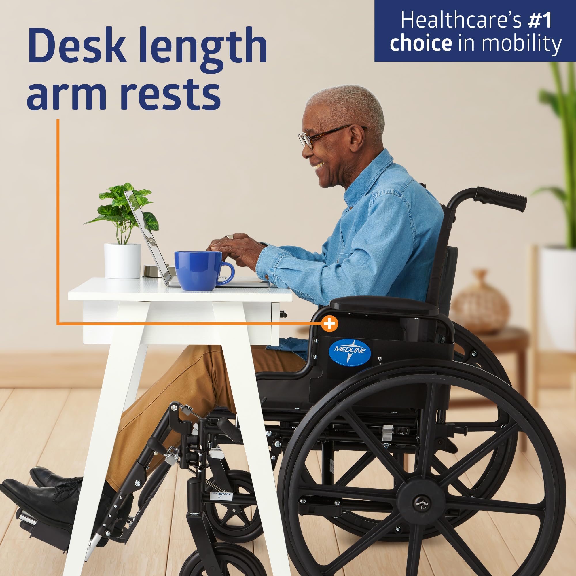 Medline Premium Ultra-lightweight Wheelchair with Flip-Back Desk Arms and Elevating Leg Rests for Extra Comfort, Black, 22” x 18" Seat