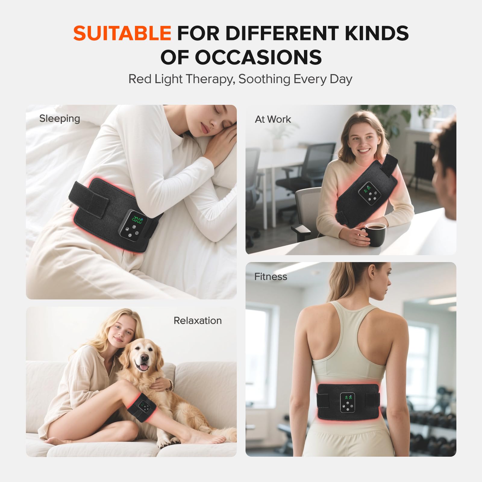 Wide Applications - 12.4" * 5.7" infrared red light therapy belt. Dual binding straps comfortably secure it to various body parts, including shoulders, back, hands, feet, hip, thigh, knee, ankle, waist and other body parts. No more expensive spa, just enjoy red light belt in anywhere or anytime you want.