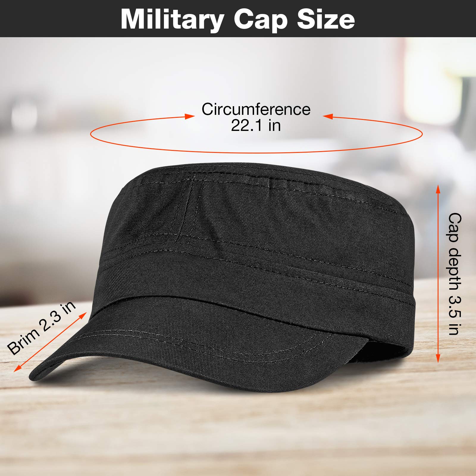 Adjustable size: the cotton fitted military caps are designed with buckle closure at the back part that allows you to adjust the hats for a more comfortable fitting to your head, flexible size making the cotton caps suitable for most people, bringing snug wearing and not easy to fall off when you do sports