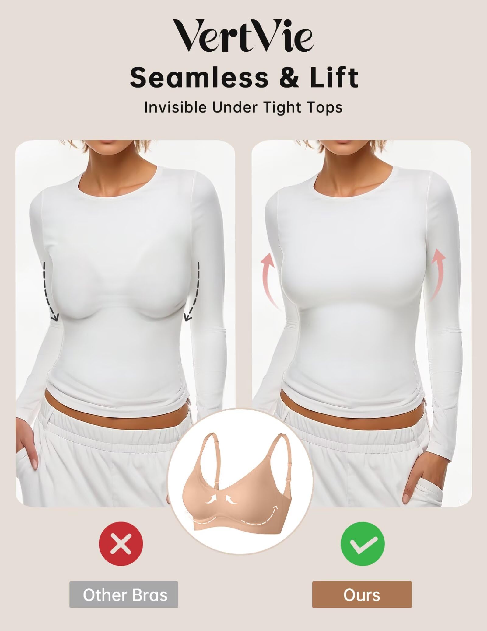 【Seamless Sports Bra】 The bras for women no underwire provide full coverage, support and lift. The sexy V-neck design enhances your bust line. The bra pads are removable, so you can take them out as needed. This everyday T-shirt bra is lightweight, invisible, and non-see-through, hugging your chest perfectly to provide a smooth look under clothing
