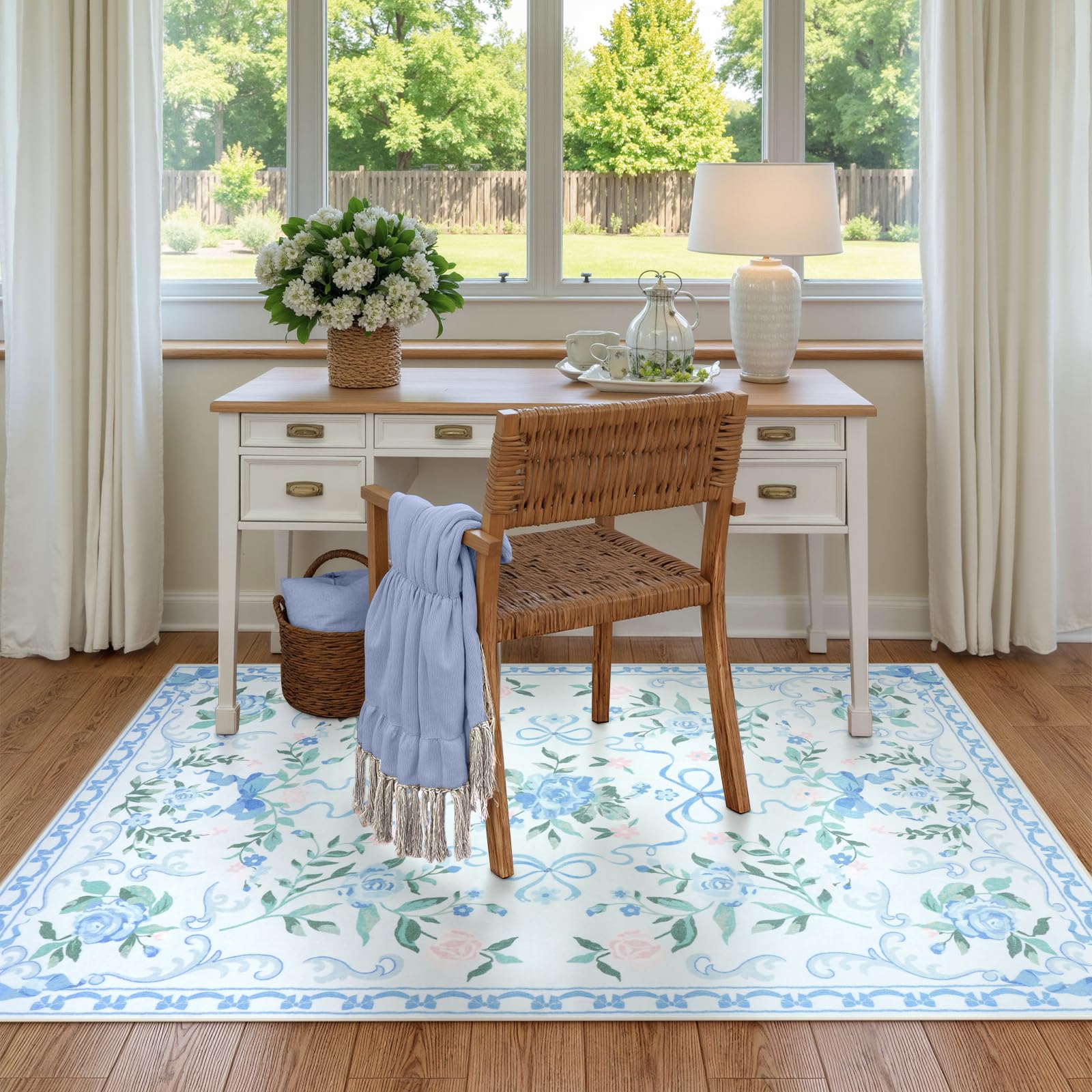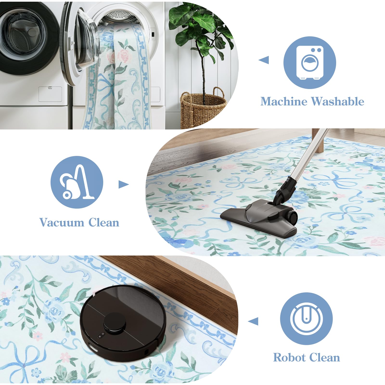 Cozy & Low Pile: Our elegant floral rugs are made of high-density, low-pile faux wool material and have a soft-touch surface that kids and pets will love to lay on, making them pet-friendly, and the low-pile design won't interfere with door opening