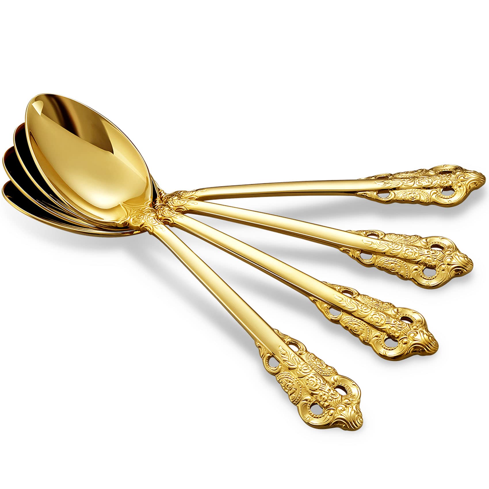 🌷4 pieces dinner spoon designed with the elegant baroque pattern, perfect for use when serving main entrees like meat and seafood.